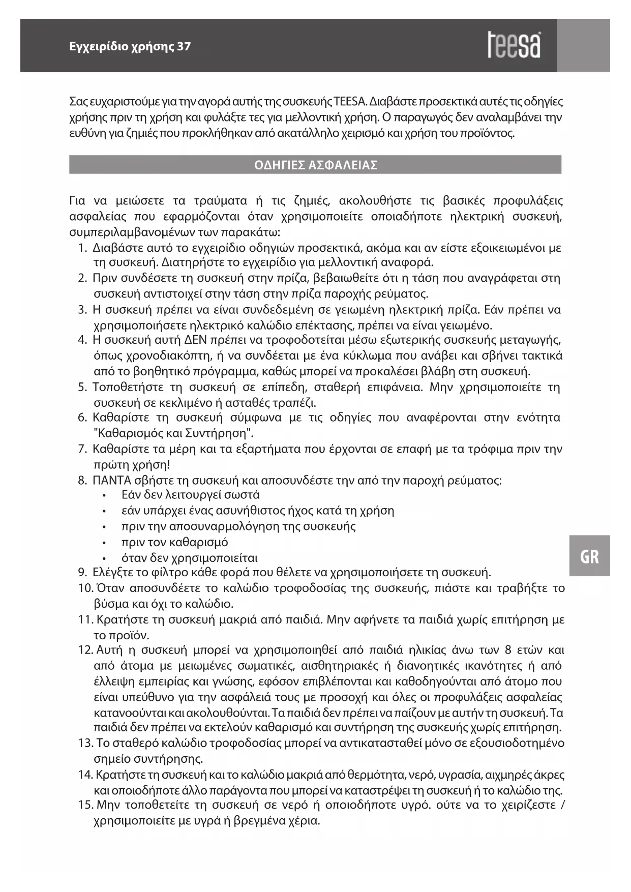 ΕΓΧΕΙΡΊΔΙΟ ΧΡΉΣΗΣ TSA3228 Teesa