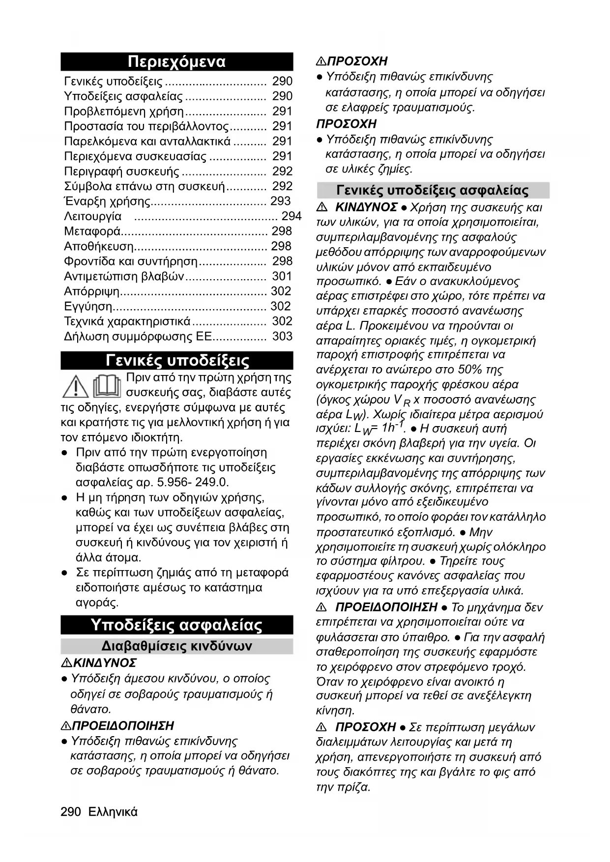 • Δήλωση συμμόρφωσης EΕ Ελληνικά 291 Συμπεριφορά σε περίπτωση εκτάκτου ανάγκης p. 303