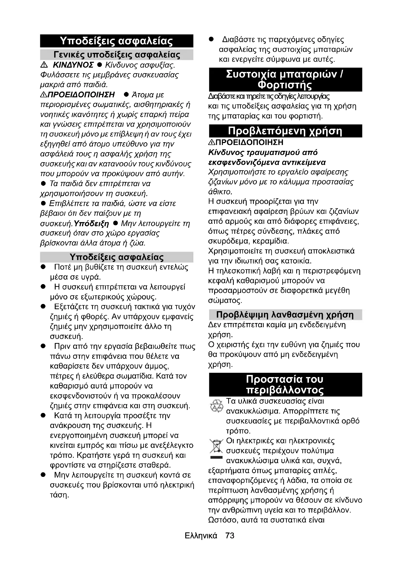 • Προστασία του περιβάλλοντος p. 73