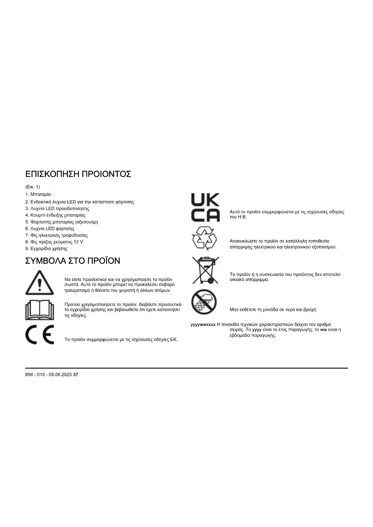 856 - 010 - 05.06.2025 37Περιεχόμενα Άλλα σύμβολα/σήματα που υπάρχουν στο προϊόν