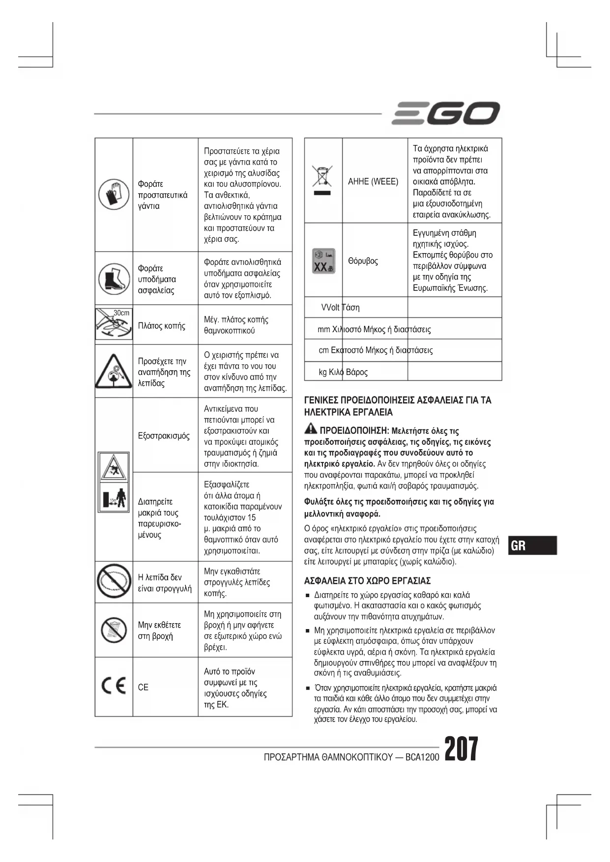 Βρείτε δωρεάν το εγχειρίδιο της συσκευής BCA1200 EGO σε μορφή PDF.