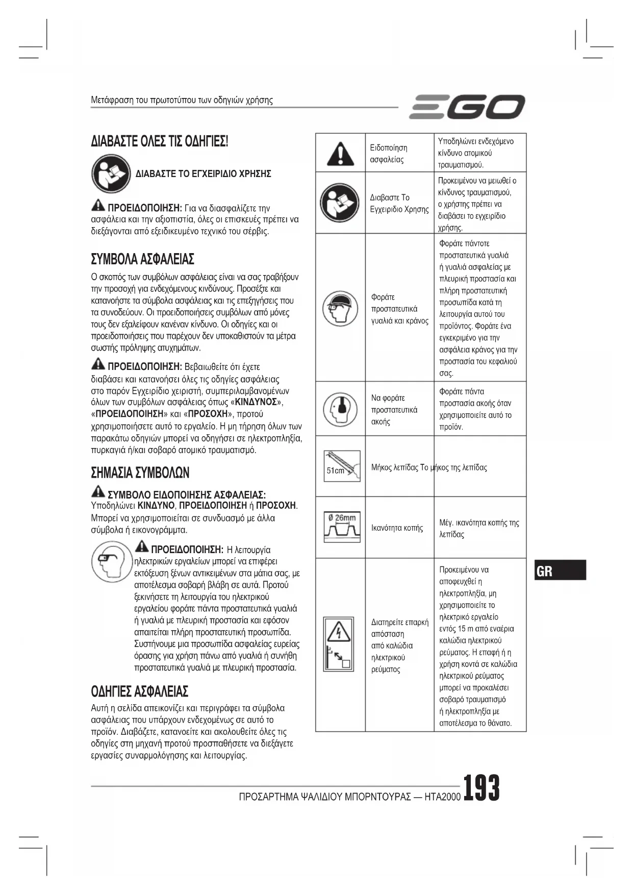 HTA2000 - Πολυλειτουργικά εργαλεία EGO - Δωρεάν εγχειρίδιο χρήσης