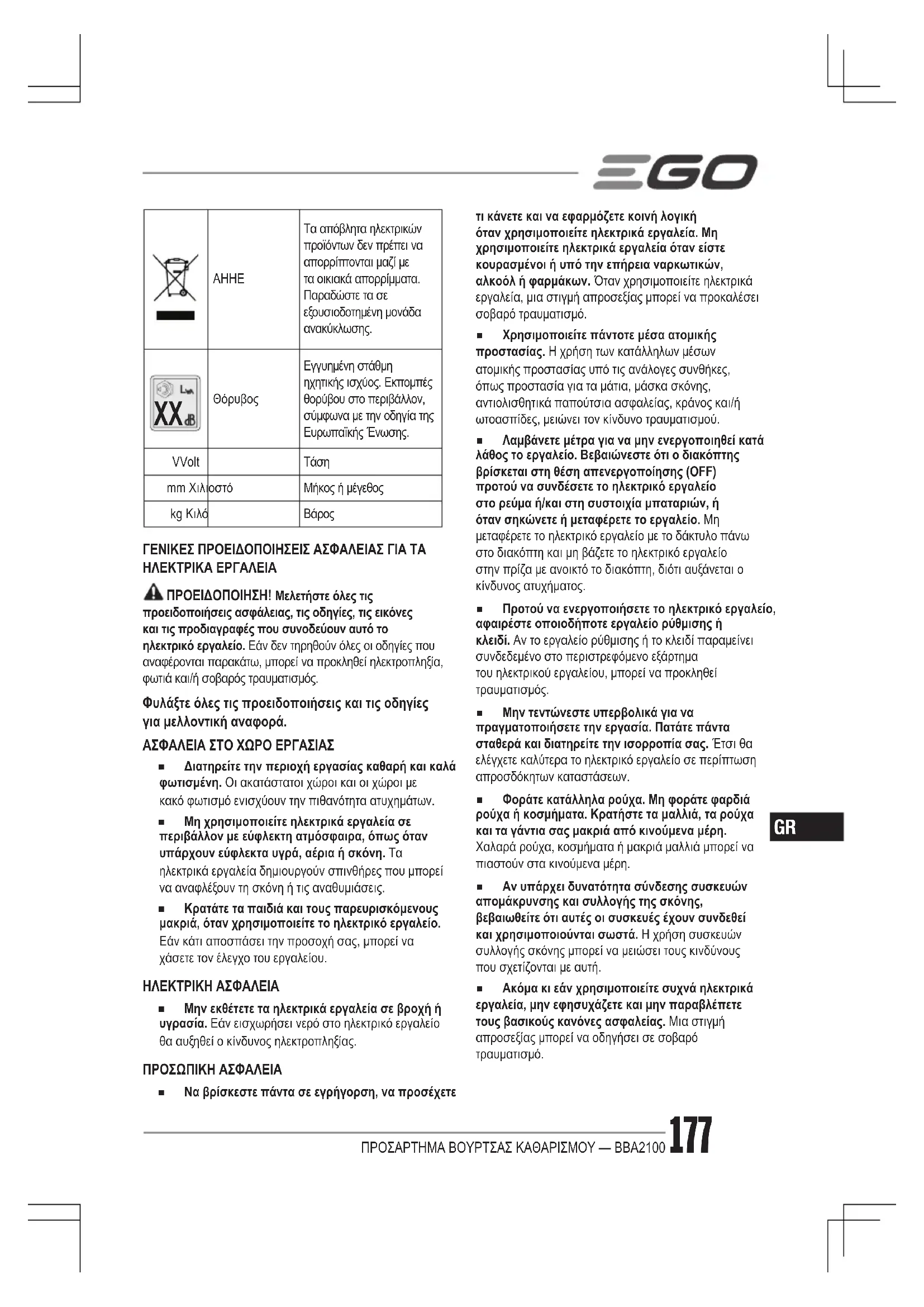 ΕΓΧΕΙΡΊΔΙΟ ΧΡΉΣΗΣ BBA2100 EGO