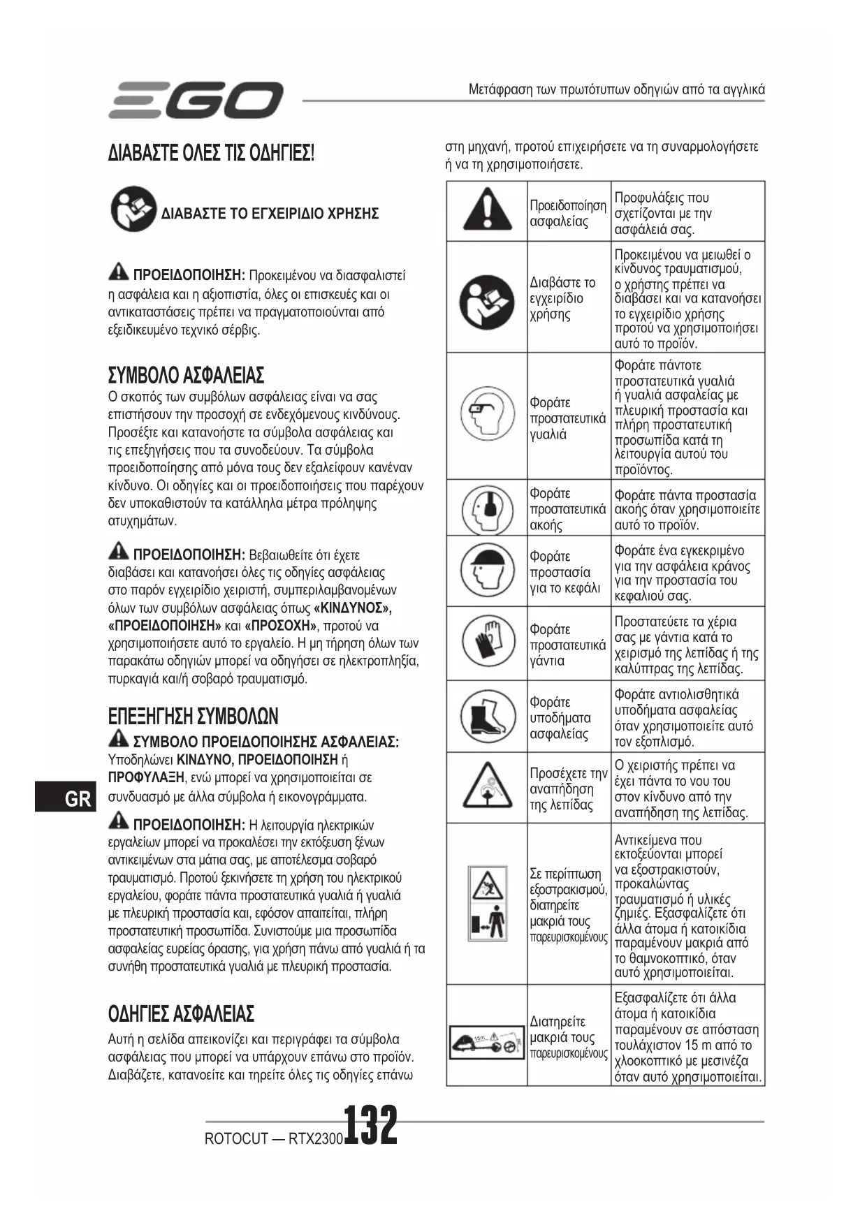 RTX2300 - χορτοκοπτικό EGO - Δωρεάν εγχειρίδιο χρήσης