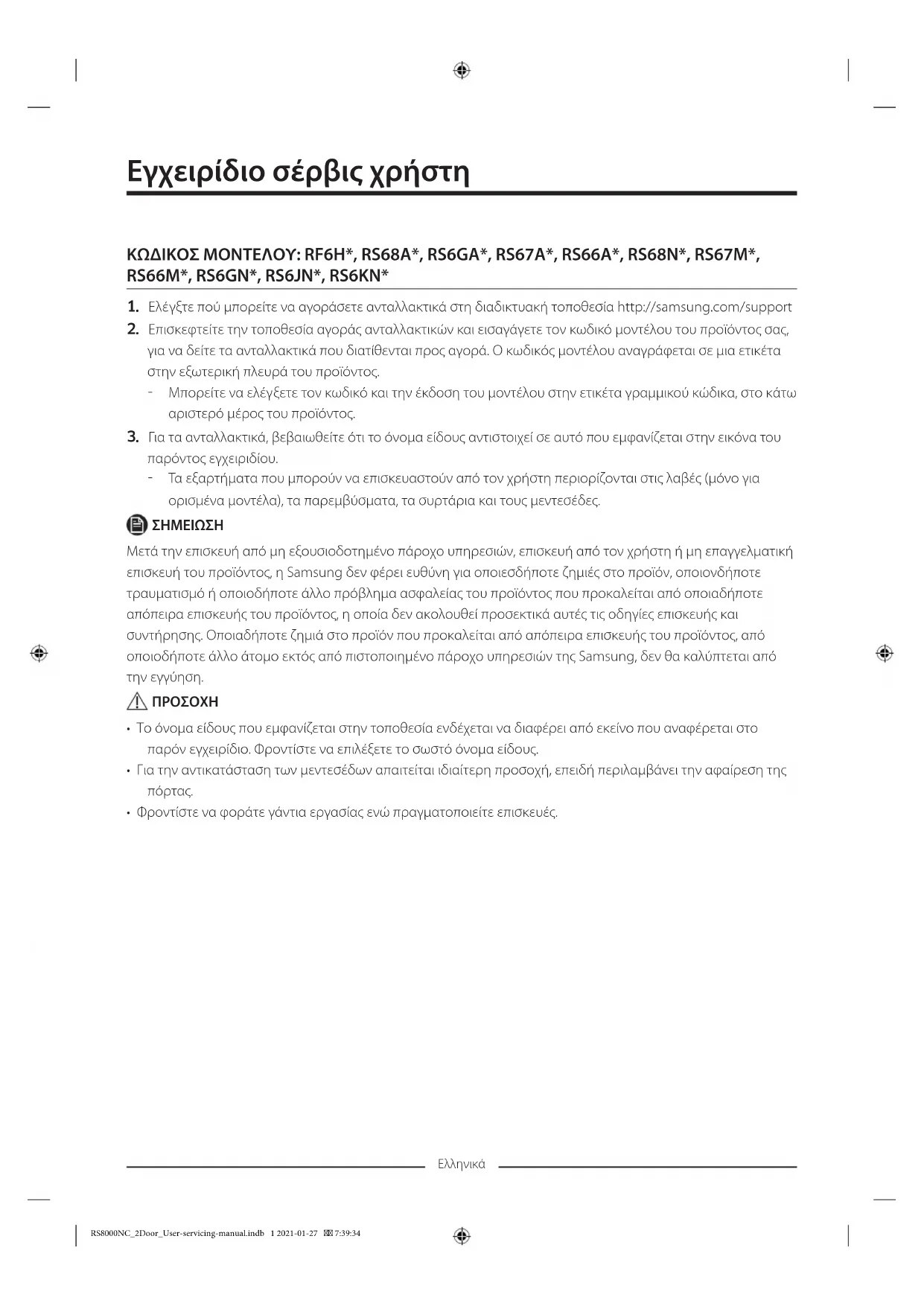 ΕΓΧΕΙΡΊΔΙΟ ΧΡΉΣΗΣ RS68A8530S9 SAMSUNG