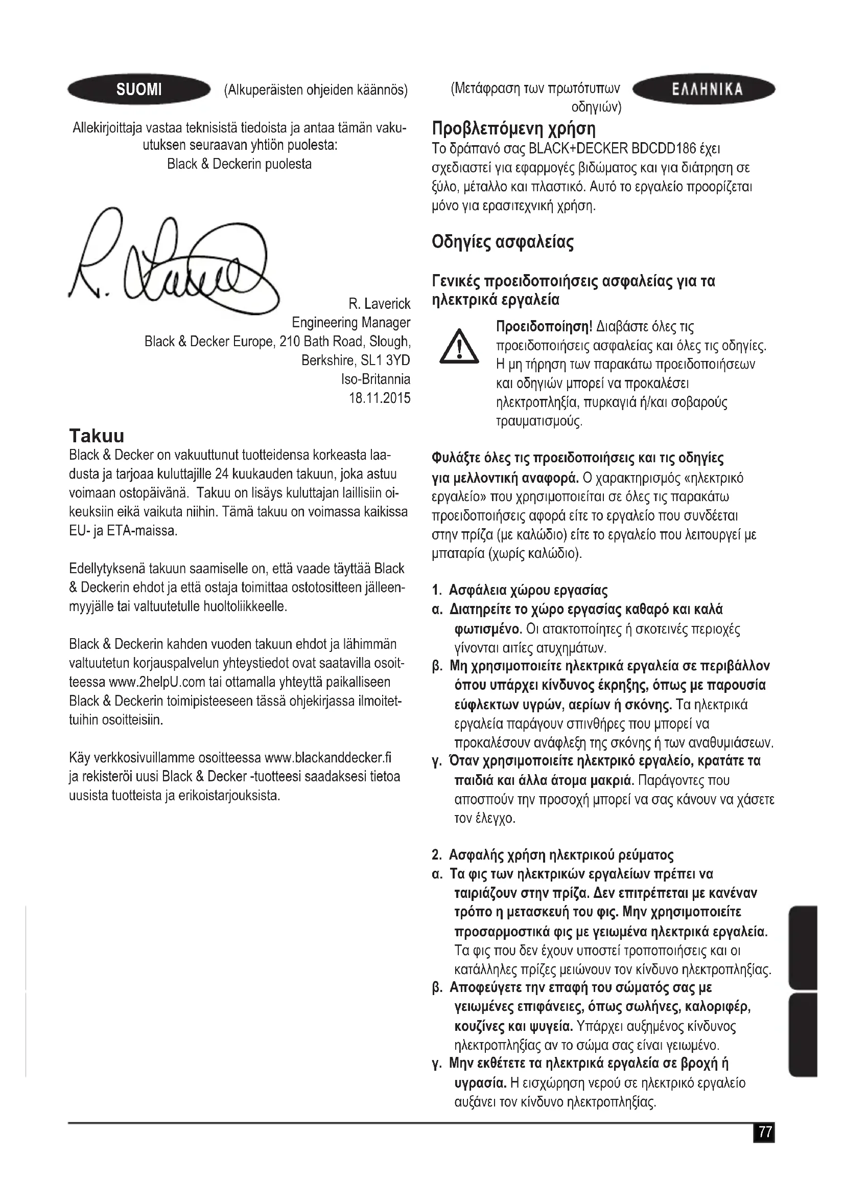 Βρείτε δωρεάν το εγχειρίδιο της συσκευής BDCDD186K BLACK & DECKER σε μορφή PDF.