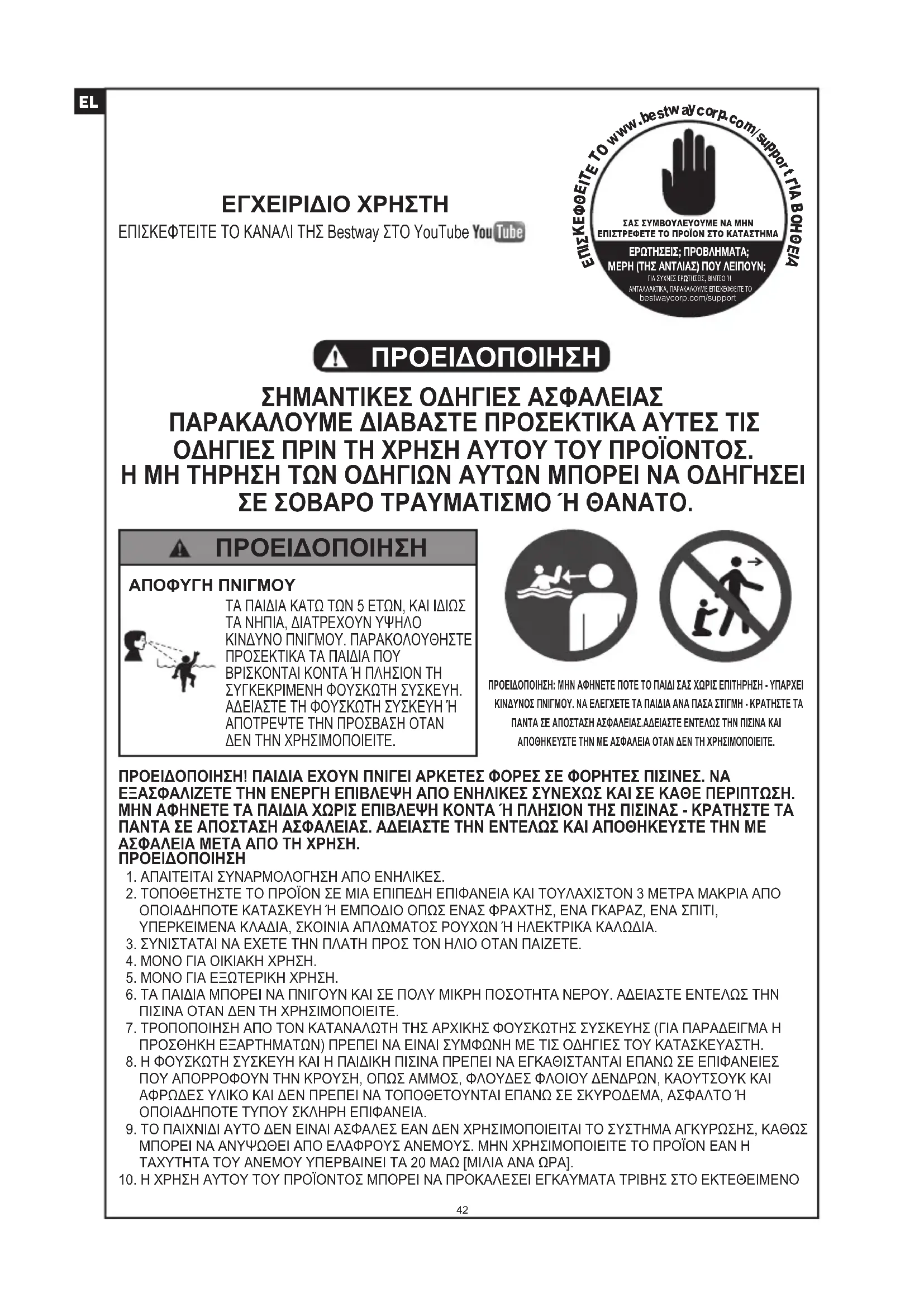 DÉPANNAGE 41ΕΠΙΣΚΕΦΤΕΙΤΕ ΤΟ ΚΑΝΑΛΙ ΤΗΣ Bestway ΣΤΟ YouTube ΕΓΧΕΙΡΙΔΙΟ ΧΡΗΣΤΗ