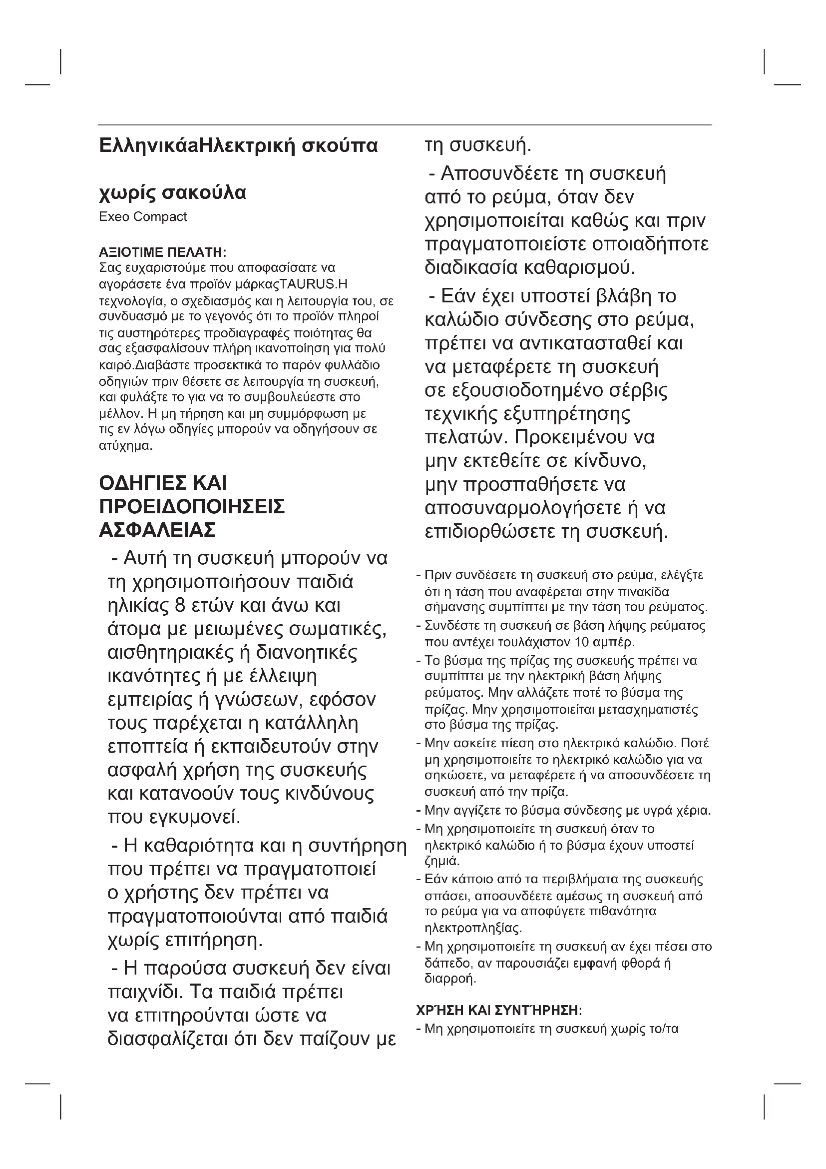 ΕΓΧΕΙΡΊΔΙΟ ΧΡΉΣΗΣ Exeo Compact TAURUS