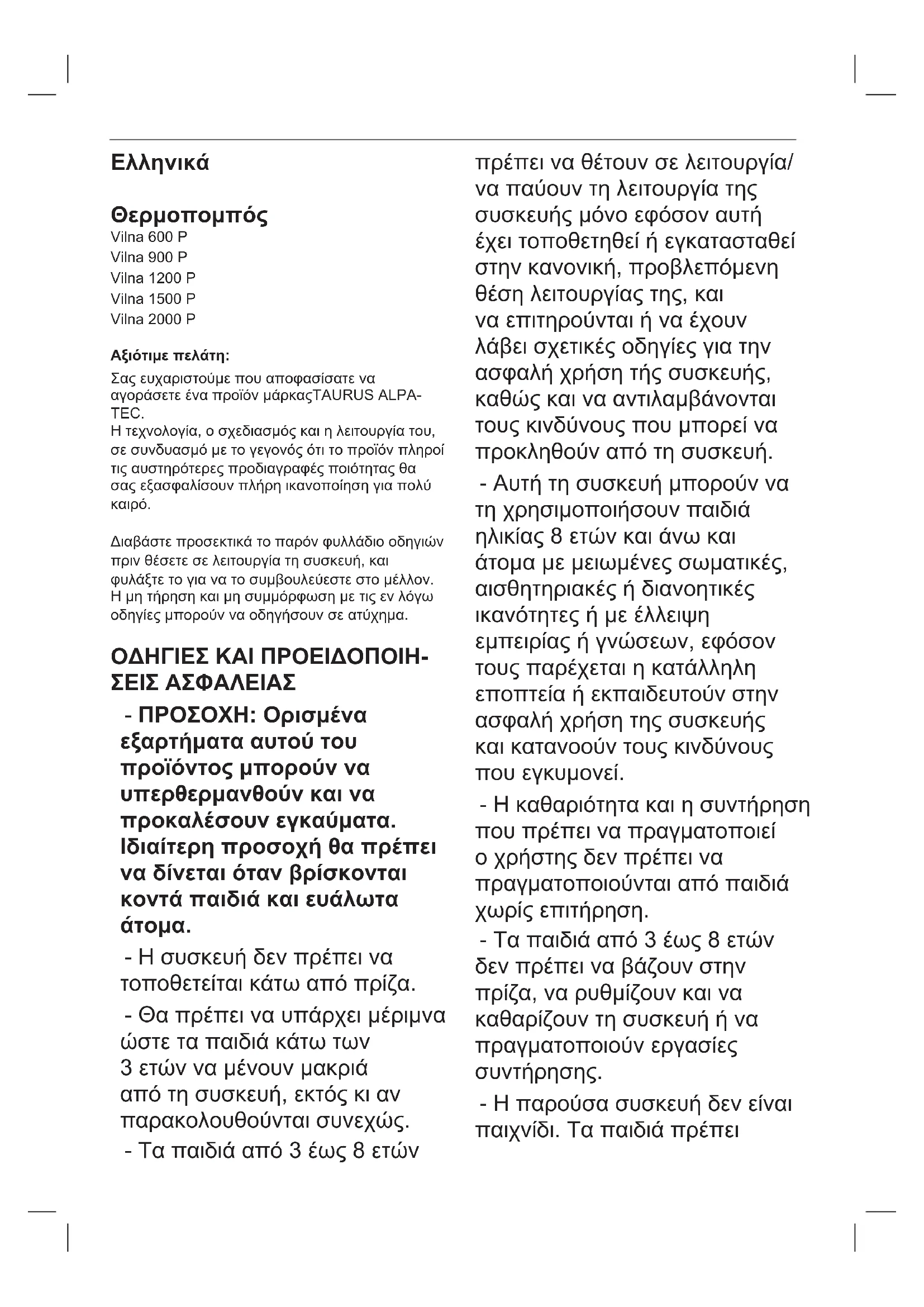 ΕΓΧΕΙΡΊΔΙΟ ΧΡΉΣΗΣ Vilna 1500 P TAURUS