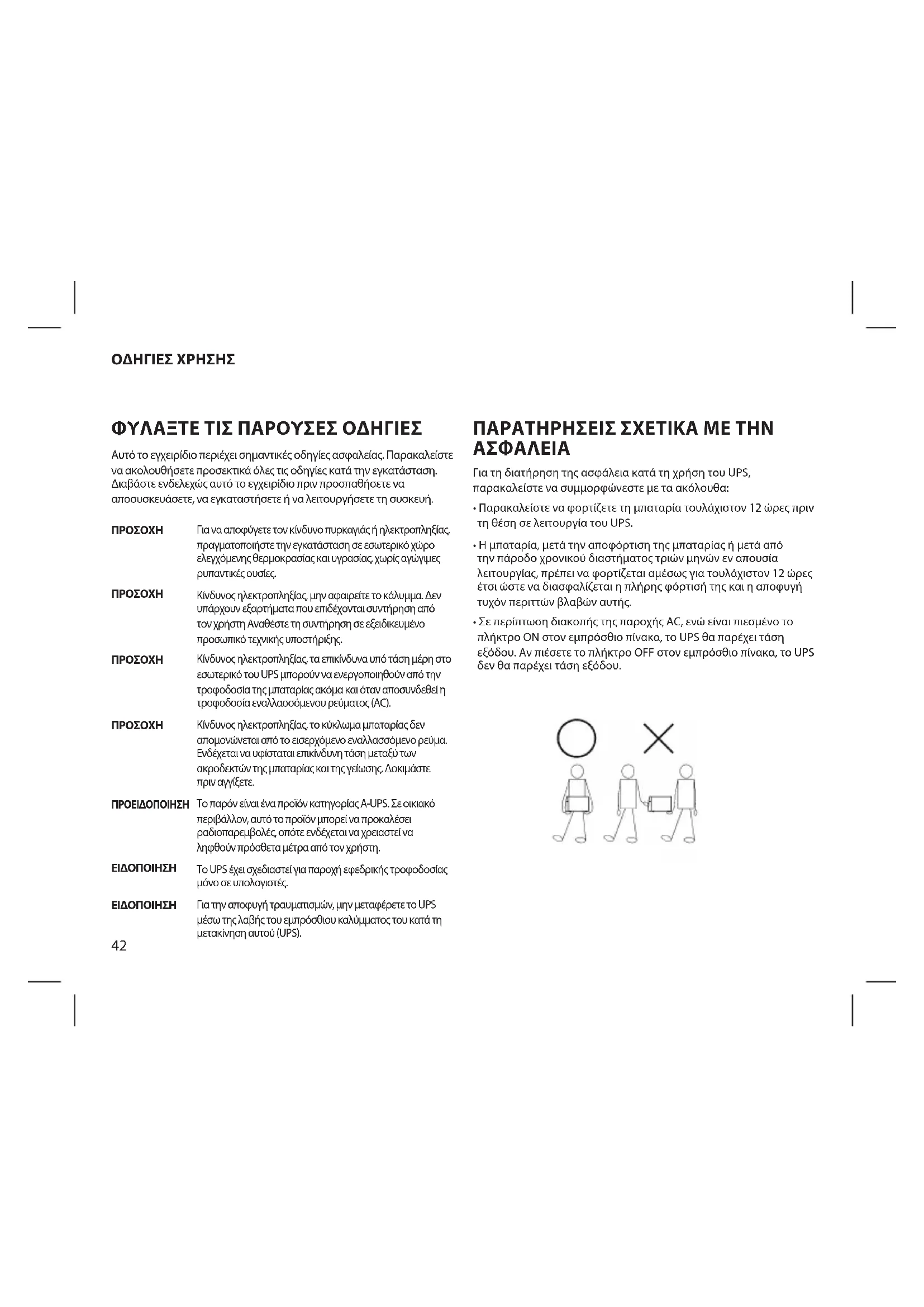 ΦΥΛΑΞΤΕ ΤΙΣ ΠΑΡΟΥΣΕΣ ΟΔΗΓΙΕΣ Για τη διατήρηση της ασφάλεια κατά τη χρήση του UPS, παρακαλείστε να συμμορφώνεστε με τα ακόλουθα: