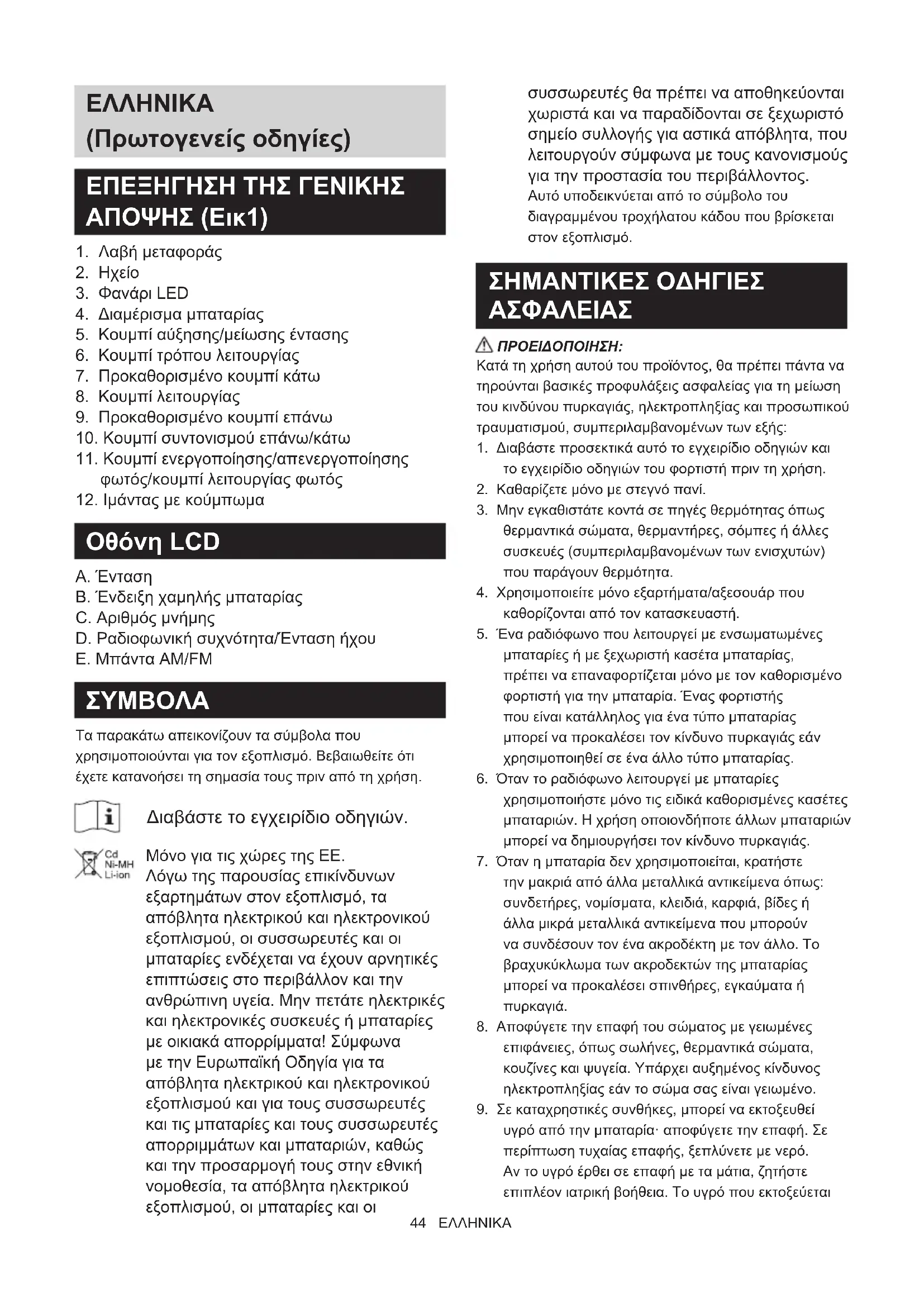 διαβάστε όλες τις οδηγίες και τις προειδοποιητικές ενδείξεις σε (1) φορτιστή μπαταρίας, (2) μπαταρία και (3) προϊόν που χρησιμοποιεί τη μπαταρία.