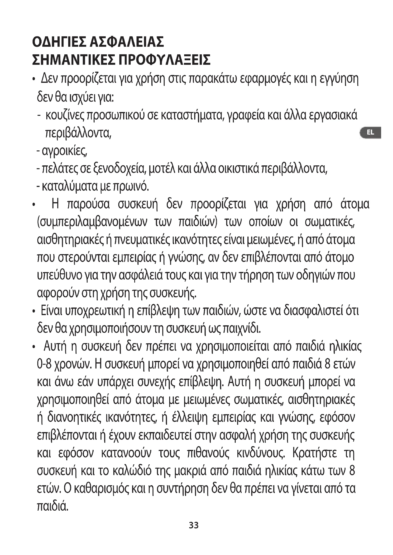 - Autó to npoiov npoopiζεtai anokλειοτικá yia oikiakn χρόn kai oxi yia εξωτepikoúc χwpuoc. Σ επερίπτωσ έπayyελμαtiκή χρόnç, n μη τήρονικ, twv odnyiw χρόnç, n εyyúnon δεν ioxuεi. Σtnv περίπτωσ autn, o kataokeuaotnc, δε χρηγει εyyúnon kai aπaλáooεtai aπo kaθε ευθύνη γia ενδεχόμενες ζημές.