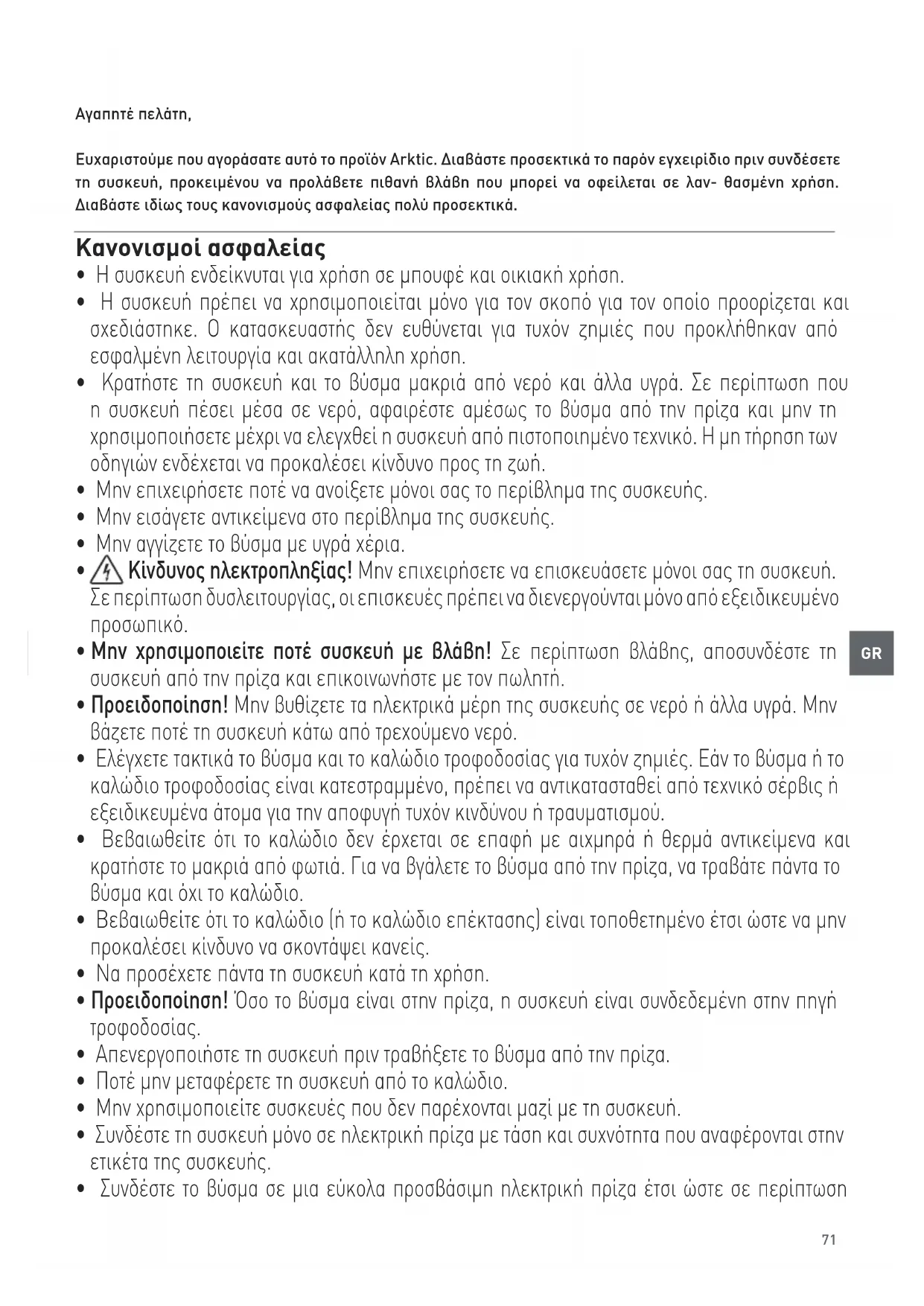 Αγαπητέ πελάτη, Ευχαριστούμε που αγοράσατε αυτό το προϊόν Arktic. Διαβάστε προσεκτικά το παρόν εγχειρίδιο πριν συνδέσετε τη συσκευή, προκειμένου να προλάβετε πιθανή βλάβη που μπορεί να οφείλεται σε λαν- θασμένη χρήση. Διαβάστε ιδίως τους κανονισμούς ασφαλείας πολύ προσεκτικά. Κανονισμοί ασφαλείας