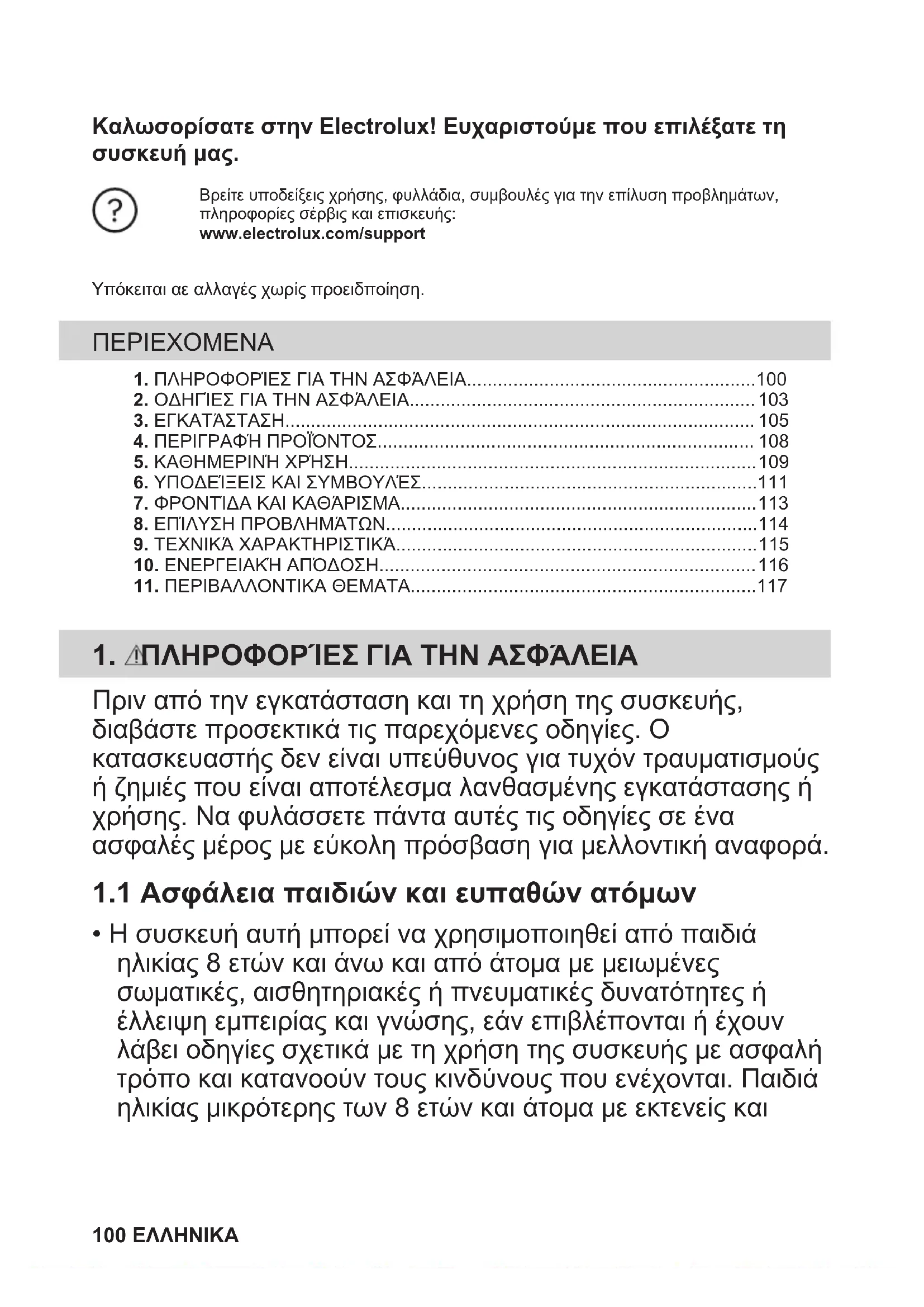 - Η συσκευή αυτή μπορεί να χρησιμοποιηθεί από παιδιά ηλικίας 8 ετών και άνω και από άτομα με μειωμένες σωματικές, αισθητηριακές ή πνευματικές δυνατότητες ή έλλειψη εμπειρίας και γνώσης, εάν επιβλέπονται ή έχουν λάβει οδηγίες σχετικά με τη χρήση της συσκευής με ασφαλή τρόπο και κατανοούν τους κινδύνους που ενέχονται. Παιδιά ηλικίας μικρότερης των 8 ετών και άτομα με εκτενείς και 100 ΕΛΛΗΝΙΚΑπερίπλοκες αναπηρίες πρέπει να παραμένουν μακριά από τη συσκευή, εκτός εάν επιβλέπονται συνεχώς.