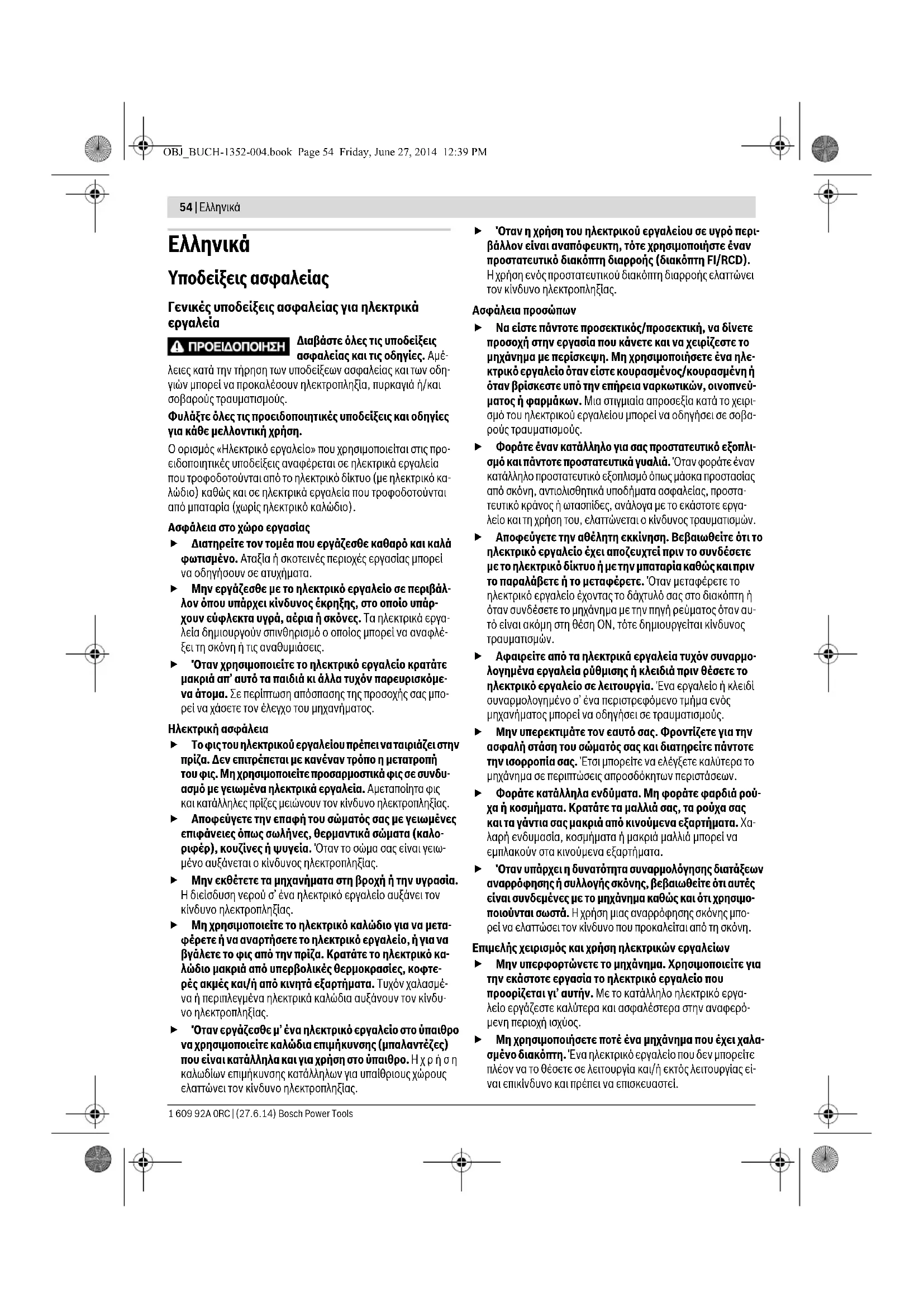 Διαβάστε όλες τις υποδείξεις ασφαλείας και τις οδηγίες. Αμέλειες κατά την τήρηση των υπο- δείξεων ασφαλείας και των οδηγιών μπορεί να προκαλέσουν ηλεκτροπληξία, πυρκαγιά ή/και σοβαρούς τραυματισμούς. Χρήση σύμφωνα με τον προορισμό Το μηχάνημα προορίζεται, υπό σταθερή οδήγηση, για την κοπή ξύλου, πλαστικών υλικών, μετάλλων και δομικών υλικών. Είναι κατάλληλο και για ίσιες και για καμπύλες κοπές. Όταν χρησιμο- ποιηθούν κατάλληλες διμεταλλικές πριονόλαμες μπορείτε να δι- εξάγετε κοπές «πρόσωπο» με το υλικό. Τηρείτε τις συστάσεις για τις πριονόλαμες. OBJ_BUCH-1352-004.book Page 55 Friday, June 27, 2014 12:39 PM56 | Ελληνικά 1 609 92A 0RC | (27.6.14) Bosch Power Tools Απεικονιζόμενα στοιχεία Η απαρίθμηση των απεικονιζόμενων στοιχείων αναφέρεται στην απεικόνιση του ηλεκτρικού εργαλείου στη σελίδα γραφικών. 1 Πριονόλαμα* 2 Πέλμα 3 Υποδοχή πριονόλαμας 4 Ράβδος εμβολισμού 5 Μοχλός SDS για μανδάλωση της πριονόλαμας 6 Διακόπτης ON/OFF 7 Λαβή (μονωμένη επιφάνεια πιασίματος) 8 Πλάκα σύσφιξης *Εξαρτήματα που απεικονίζονται ή περιγράφονται δεν περιέχονται στη στάνταρ συσκευασία. Για τον πλήρη κατάλογο εξαρτημάτων κοί- τα το πρόγραμμα εξαρτημάτων. Τεχνικά χαρακτηριστικά Πληροφορίες για θόρυβο και δονήσεις Τιμές εκπομπής θορύβου, υπολογισμένες κατά EN 60745-2-11. Η χαρακτηριστική στάθμη εκπομπής θορύβων του μηχανήματος εκτιμήθηκε σύμφωνα με την καμπύλη Α και ανέρχεται σε: Στάθ- μη ακουστικής πίεσης 90 dB(A). Στάθμη ακουστικής ισχύος 101 dB(A). Ανασφάλεια μέτρησης K=3 dB. Φοράτε ωτασπίδες! Οι συνολικές τιμές κραδασμών a