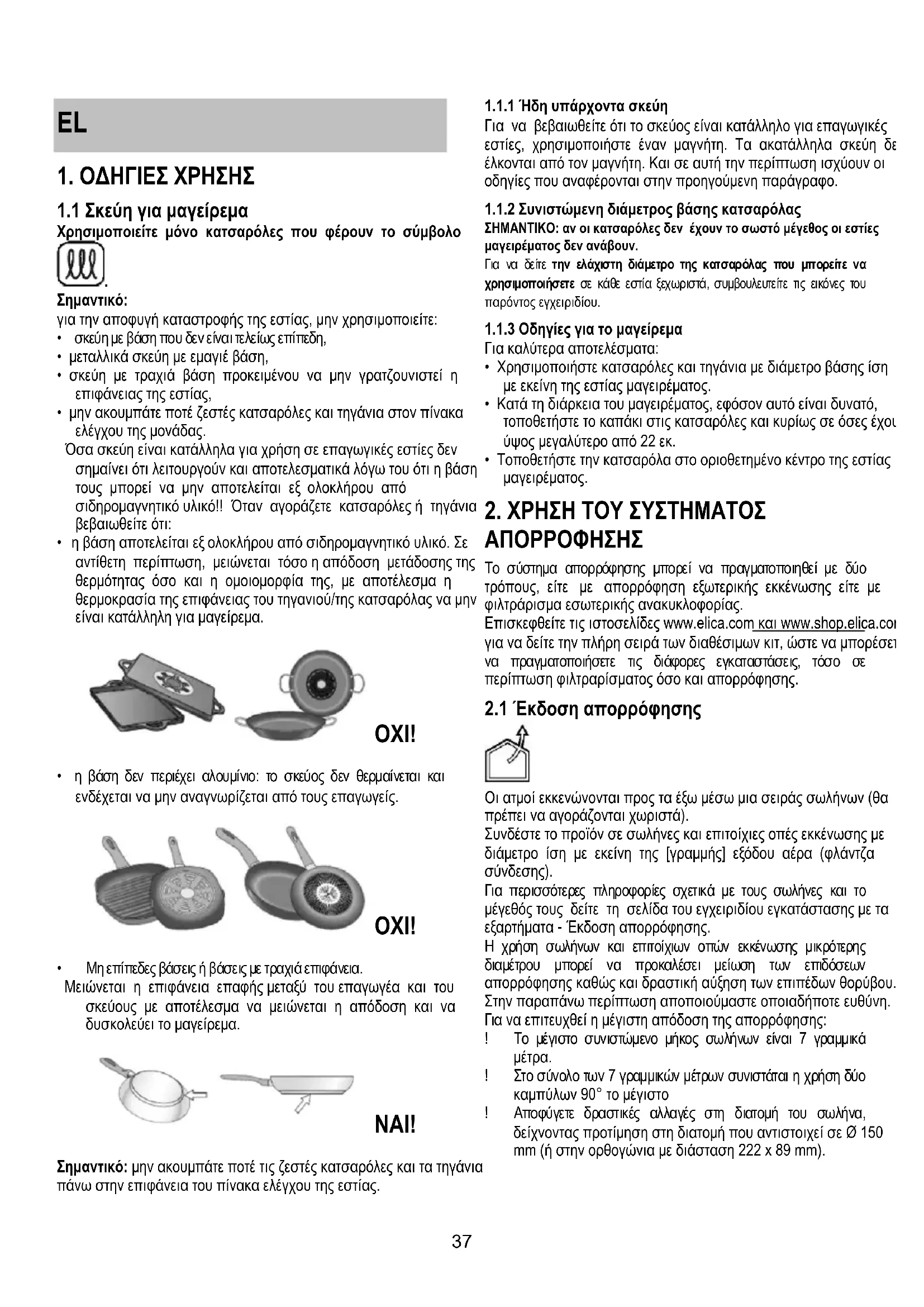 - μην ακουμπάτε ΠΟΤΕς Κασαρόλες και Ιγάνισον πίνακα ελέγχου τής μονάδας.