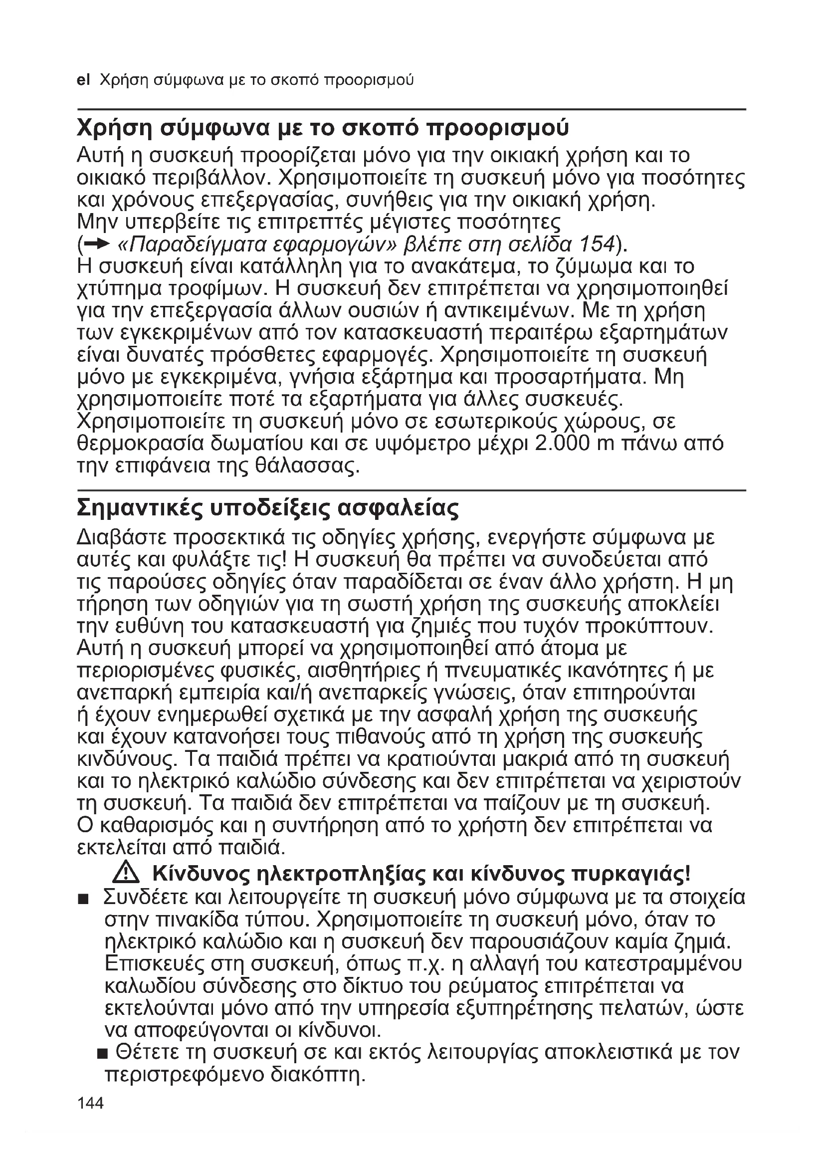 - Περιεχόμενα Χρήση σύμφωνα με το σκοπό προορισμού p. 144