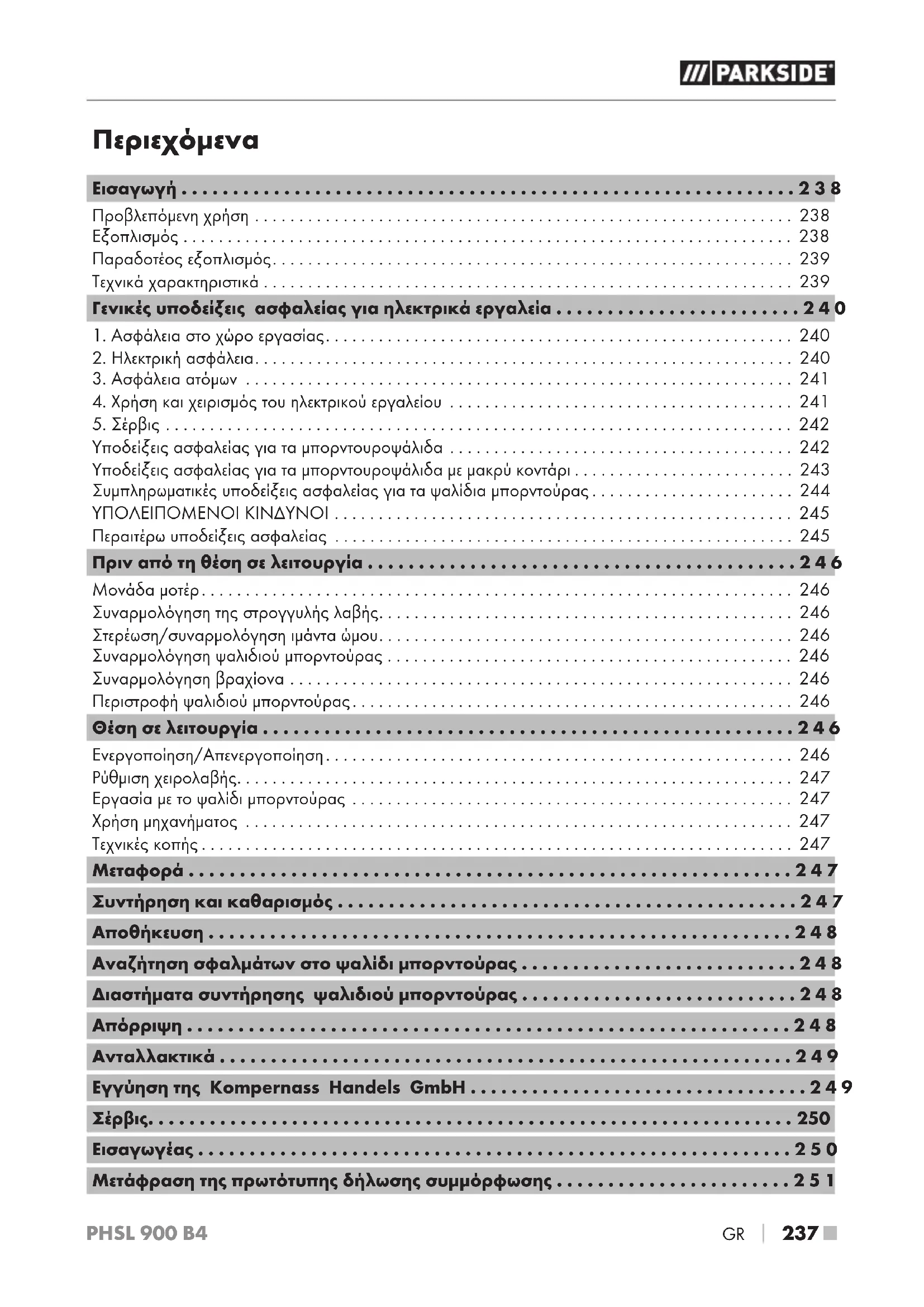 - 237 ■ PHSL 900 B4 Περιεχόμενα Εισαγωγή p. 238