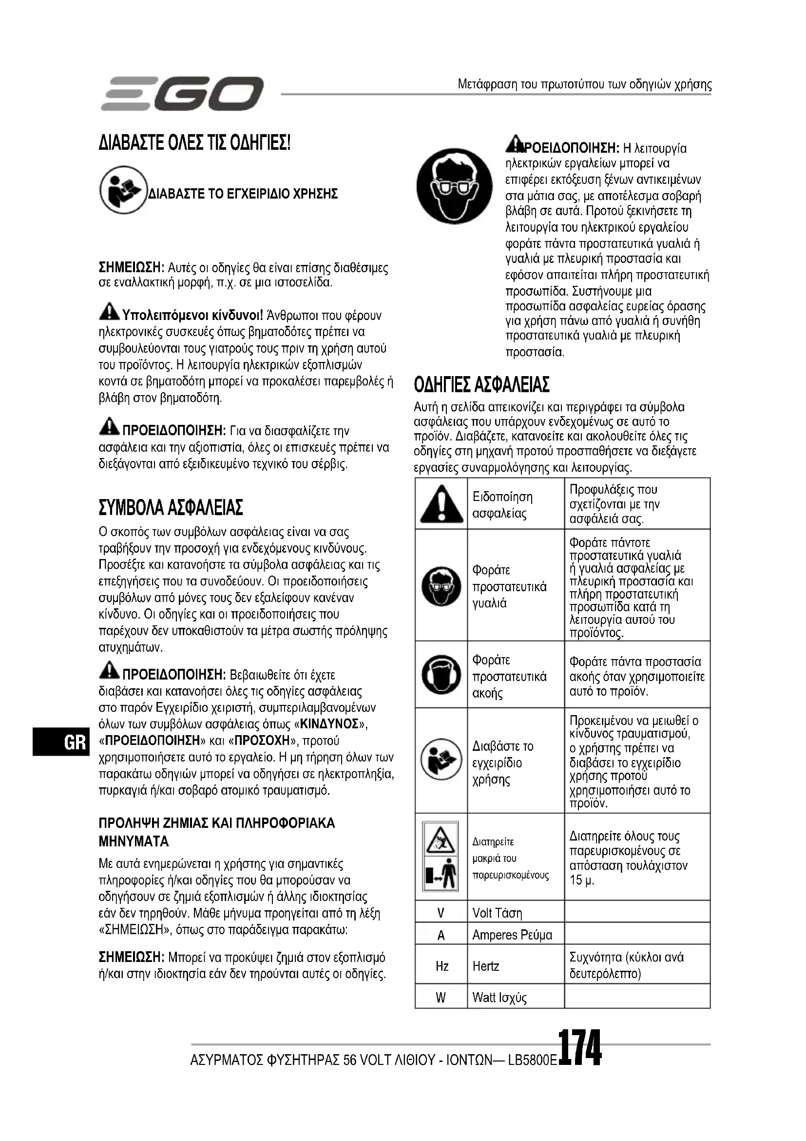 Κατεβάστε τις οδηγίες για το Φυσητήρας σε μορφή PDF δωρεάν! Βρείτε το εγχειρίδιό σας LB5804E - EGO και πάρτε ξανά την ηλεκτρονική σας συσκευή στα χέρια σας. Σε αυτή τη σελίδα δημοσιεύονται όλα τα έγγραφα που απαιτούνται για τη χρήση της συσκευής σας. LB5804E της μάρκας EGO.