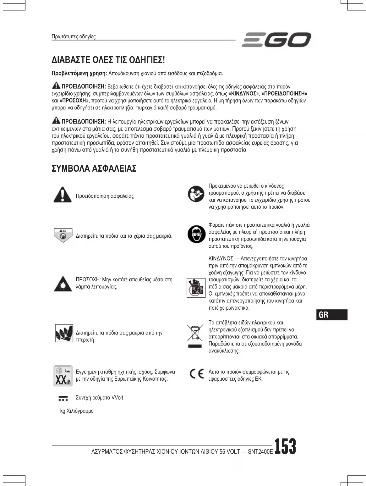 Κατεβάστε τις οδηγίες για το Φυσητήρας σε μορφή PDF δωρεάν! Βρείτε το εγχειρίδιό σας SNT2400EK2753 - EGO και πάρτε ξανά την ηλεκτρονική σας συσκευή στα χέρια σας. Σε αυτή τη σελίδα δημοσιεύονται όλα τα έγγραφα που απαιτούνται για τη χρήση της συσκευής σας. SNT2400EK2753 της μάρκας EGO.