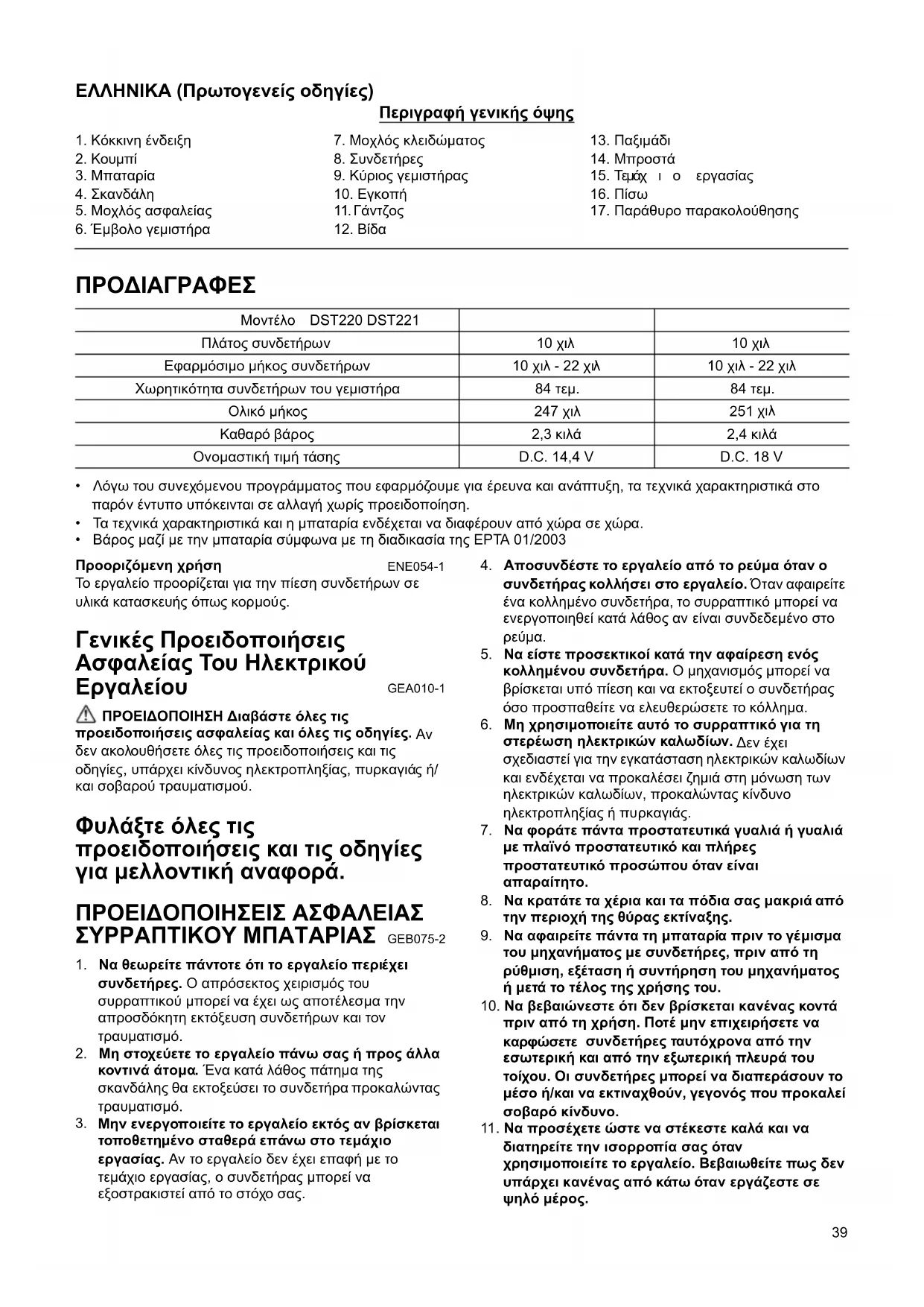 GEA010-1 ΠΡΟΕΙΔΟΠΟΙΗΣΗ Διαβάστε όλες τις προειδοποιήσεις ασφαλείας και όλες τις οδηγίες.
