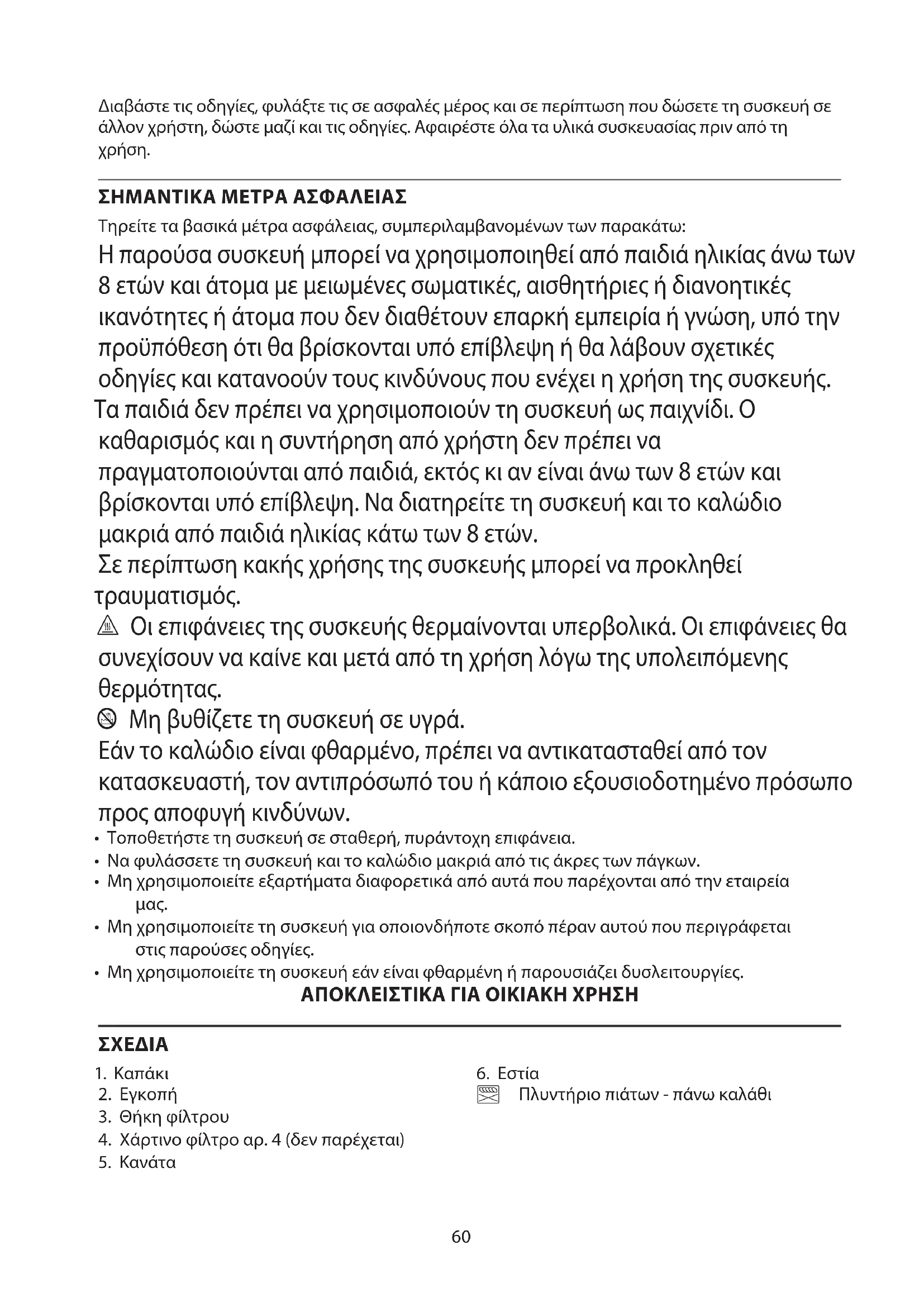 - Μη χρησιμοποιείτε τη συσκευή εάν είναι φθαρμένη ή παρουσιάζει δυσλειτουργίες. ΑΠΟΚΛΕΙΣΤΙΚΑ ΓΙΑ ΟΙΚΙΑΚΗ ΧΡΗΣΗ