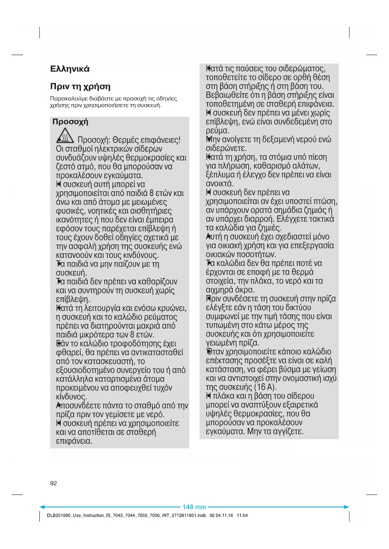 DLB251960_Use_Instruction_IS_7043_7044_7055_7056_INT_5712811851.indb 91 04.11.16 11:54Ελληνικά Πριν τη χρήση Παρακαλούμε διαβάστε με προσοχή τις οδηγίες χρήσης πριν χρησιμοποιήσετε τη συσκευή.