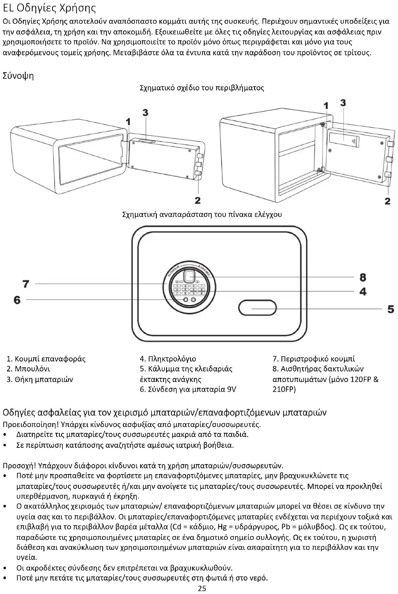 αποτυπωμάτων (μόνο 120FP & 210FP) Οδηγίες ασφαλείας για τον χειρισμό μπαταριών/επαναφορτιζόμενων μπαταριών Προειδοποίηση! Υπάρχει κίνδυνος ασφυξίας από μπαταρίες/συσσωρευτές.