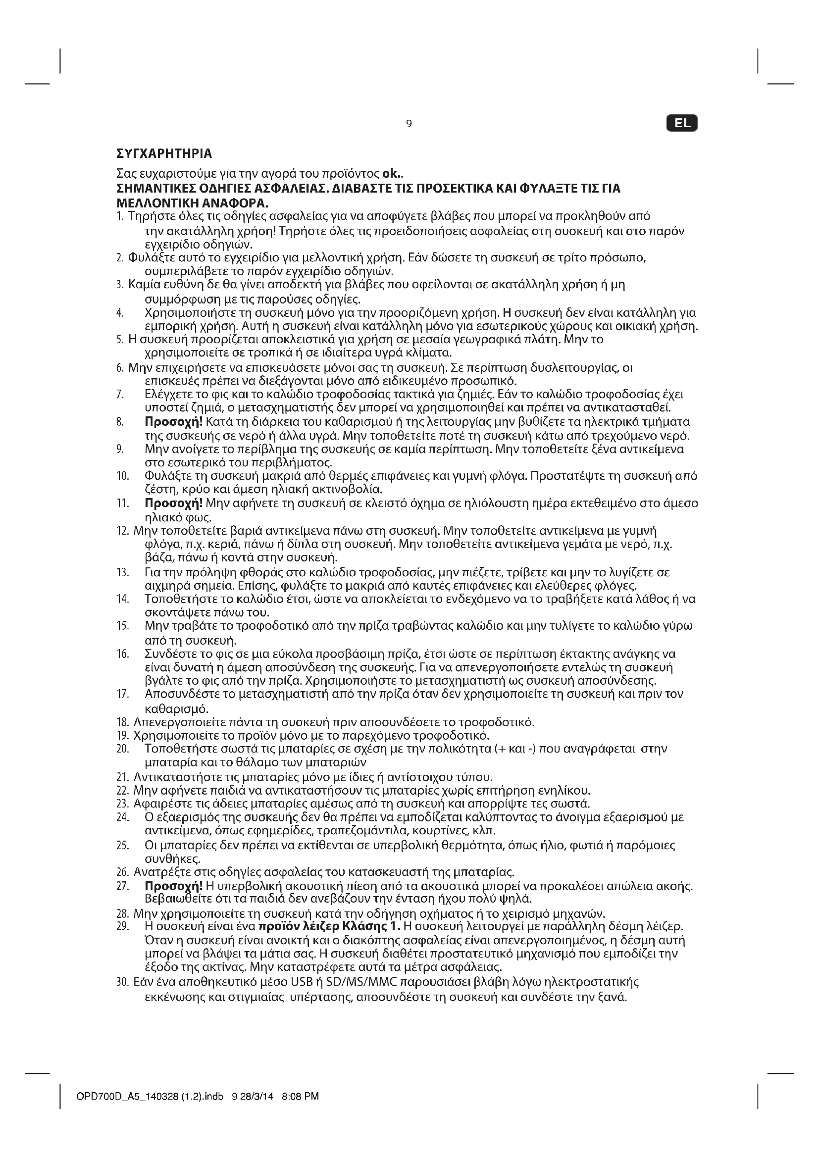 ΣΥΓΧΑΡΗΤΗΡΙΑ Σας ευχαριστούμε για την αγορά του προϊόντος ok.. ΣΗΜΑΝΤΙΚΕΣ ΟΔΗΓΙΕΣ ΑΣΦΑΛΕΙΑΣ. ΔΙΑΒΑΣΤΕ ΤΙΣ ΠΡΟΣΕΚΤΙΚΑ ΚΑΙ ΦΥΛΑΞΤΕ ΤΙΣ ΓΙΑ ΜΕΛΛΟΝΤΙΚΗ ΑΝΑΦΟΡΑ.