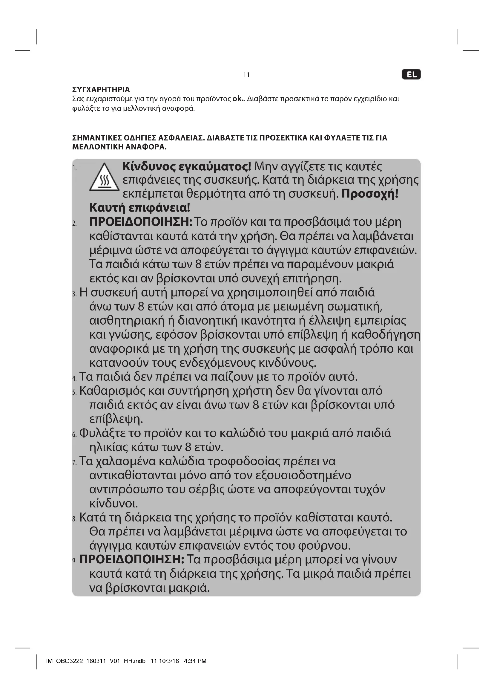 καυτά κατά τη διάρκεια της χρήσης. Τα μικρά παιδιά πρέπει να βρίσκονται μακριά. IM_OBO3222_160311_V01_HR.indb 11 10/3/16 4:34 PM12