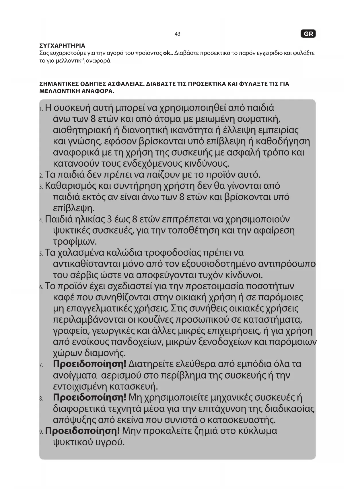 ΣΥΓΧΑΡΗΤΗΡΙΑ Σας ευχαριστούμε για την αγορά του προϊόντος ok.. Διαβάστε προσεκτικά το παρόν εγχειρίδιο και φυλάξτε το για μελλοντική αναφορά. ΣΗΜΑΝΤΙΚΈΣ ΟΔΗΓΙΈΣ ΑΣΦΑΛΈΙΑΣ. ΔΙΑΒΑΣΤΈ ΤΙΣ ΠΡΟΣΈΚΤΙΚΑ ΚΑΙ ΦΥΛΑΞΤΈ ΤΙΣ ΓΙΑ ΜΈΛΛΟΝΤΙΚΗ ΑΝΑΦΟΡΑ.