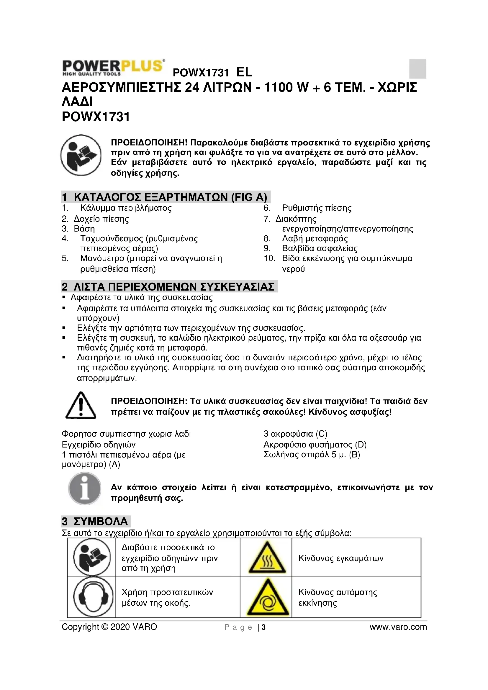 Κίνδυνος αυτόματης εκκίνησηςPOWX1731 EL Copyright © 2020 VARO P a g e | 4 www.varo.com