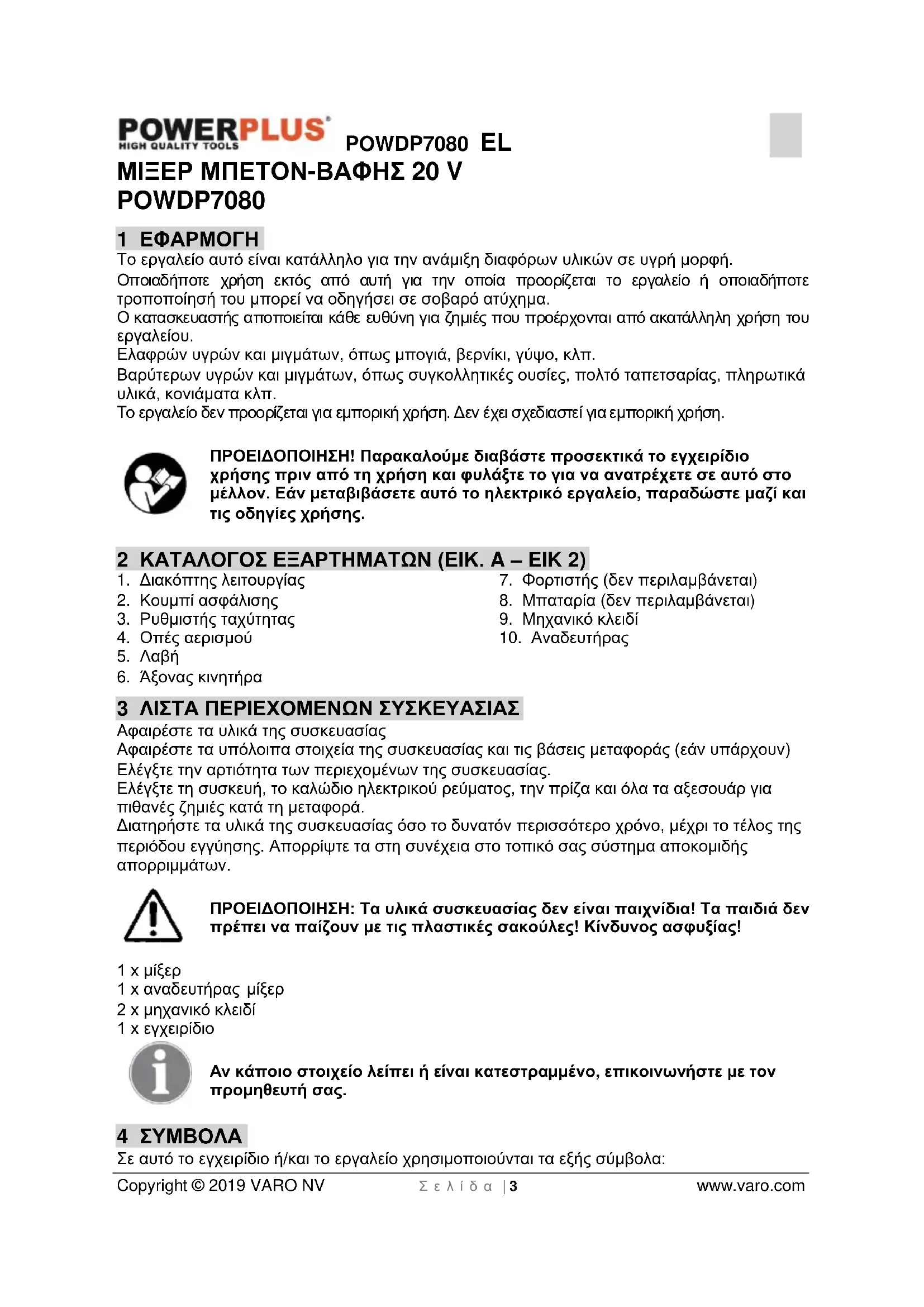 - POWDP7080 EL Copyright © 2019 VARO NV Σ ε λ ί δ α | 2 www.varo.com 14 ΕΓΓΥΗΣΗ p. 12