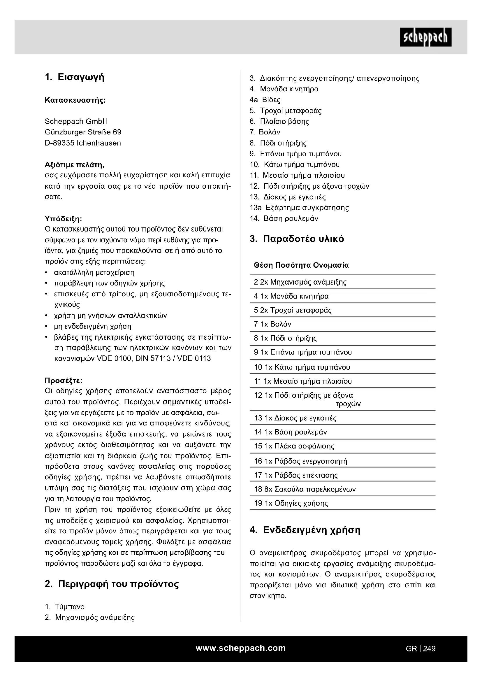 Κατασκευαστής: Scheppach GmbH Günzburger Straße 69 D-89335 Ichenhausen Αξιότιμε πελάτη, σας ευχόμαστε πολλή ευχαρίστηση και καλή επιτυχία κατά την εργασία σας με το νέο προϊόν που αποκτή-