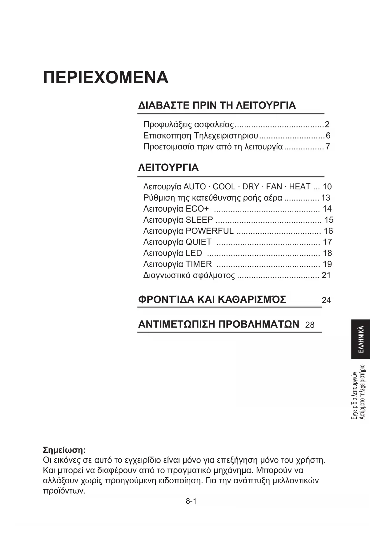 ΠΕΡΙΕΧΟΜΕΝΑ ΔΙΑΒΑΣΤΕ ΠΡΙΝ ΤΗ ΛΕΙΤΟΥΡΓΙΑ Προφυλάξεις ασφαλείας ...................................... 2 Επισκοπηση Τηλεχειριστηριου ............................ 6 Προετοιμασία πριν από τη λειτουργία ................. 7