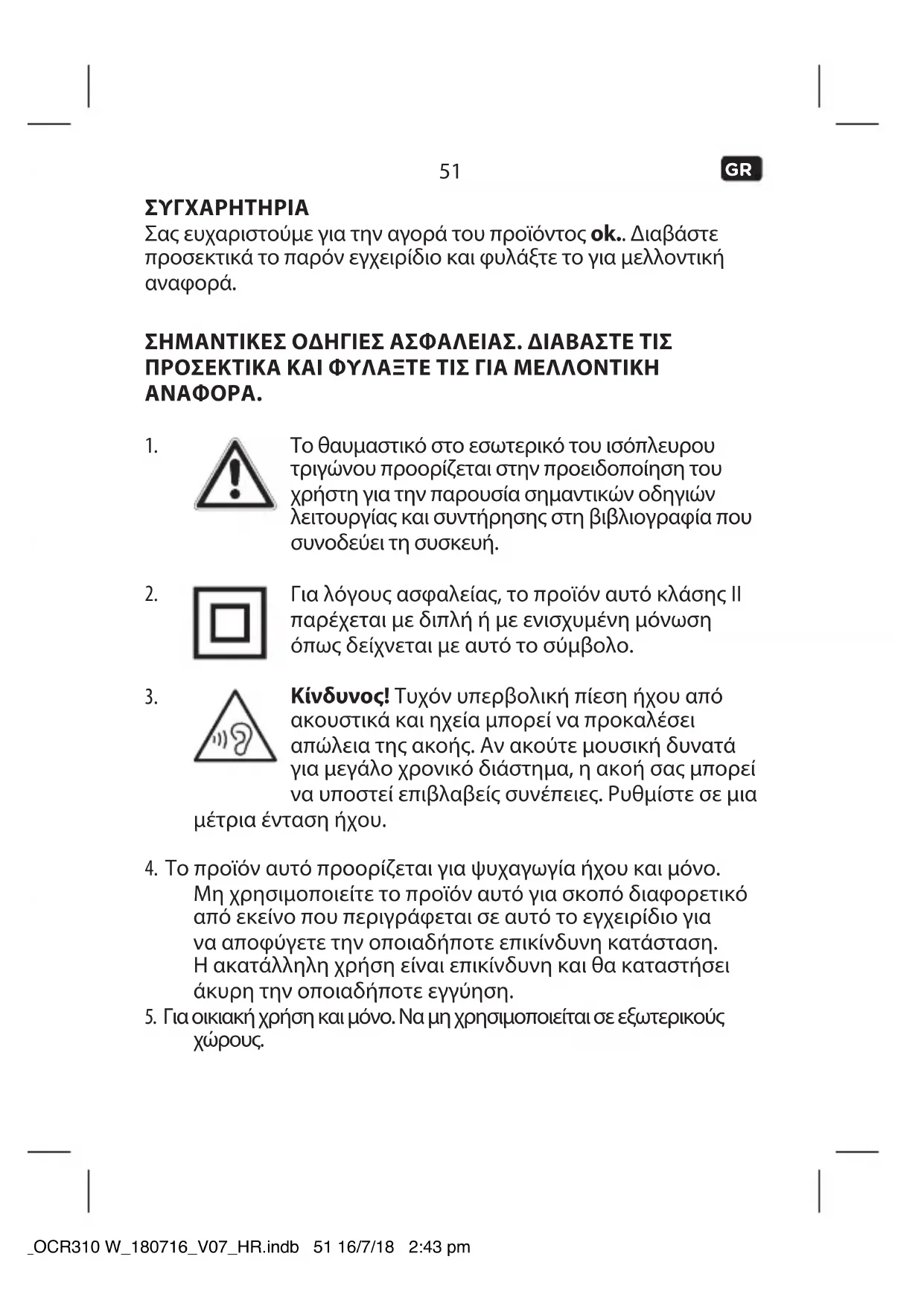 ΣΥΓΧΑΡΗΤΗΡΙΑ Σας ευχαριστούμε για την αγορά του προϊόντος ok.. Διαβάστε προσεκτικά το παρόν εγχειρίδιο και φυλάξτε το για μελλοντική