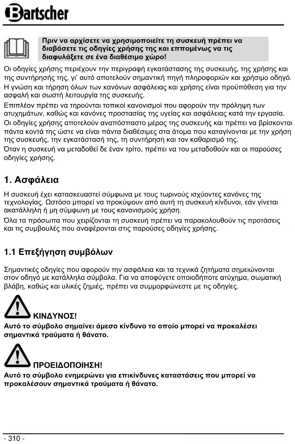 1.3 Χρήση σύμφωνα με τον προορισμό ................................................................... 315