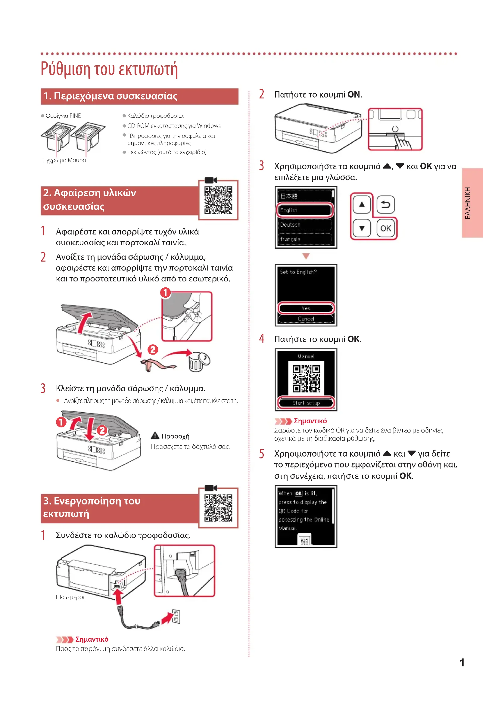 1. Περιεχόμενα συσκευασίας