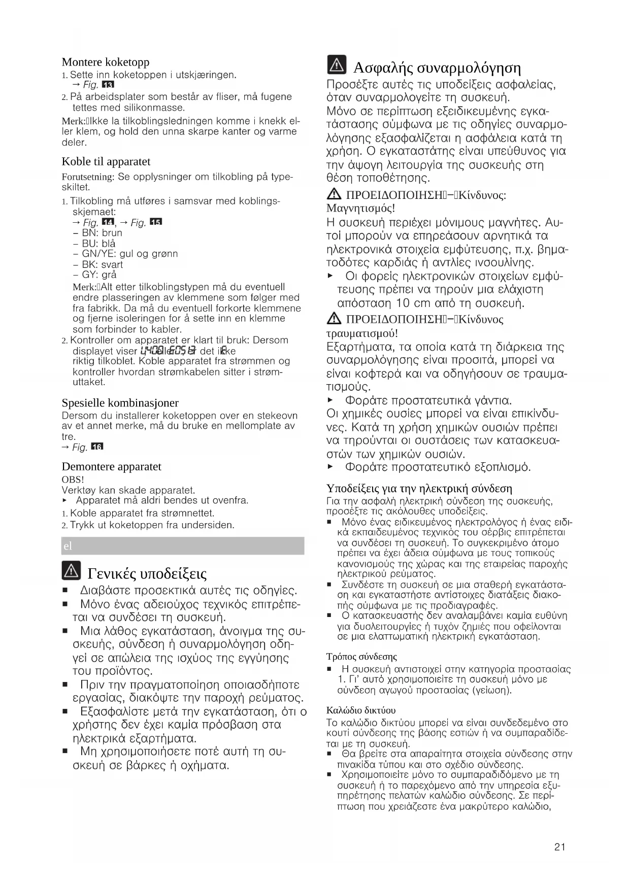 Σημειωη: Eav toioθετhaετ ηοαkeun θε μia vna iδα kouζivac n θε μia αλλη, μn περγραφóμενn θεοπ, εξασαλίσετov ωοτό αεριομό ηκ; βαούς ΕΟΤΙΑν.