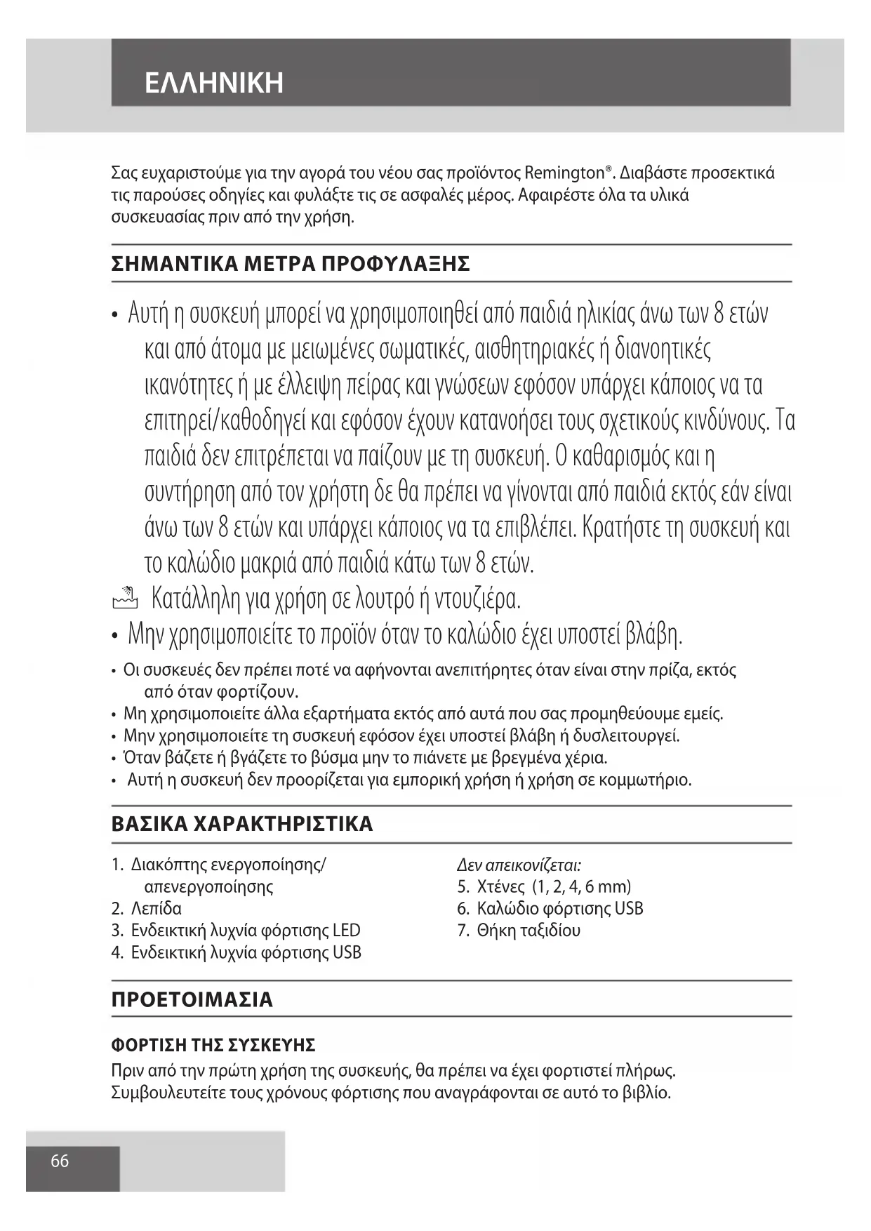 AE66 Σας ευχαριστούμε για την αγορά του νέου σας προϊόντος Remington®. Διαβάστε προσεκτικά τις παρούσες οδηγίες και φυλάξτε τις σε ασφαλές μέρος. Αφαιρέστε όλα τα υλικά συσκευασίας πριν από την χρήση. ΣΗΜΑΝΤΙΚΑ ΜΕΤΡΑ ΠΡΟΦΥΛΑΞΗΣ