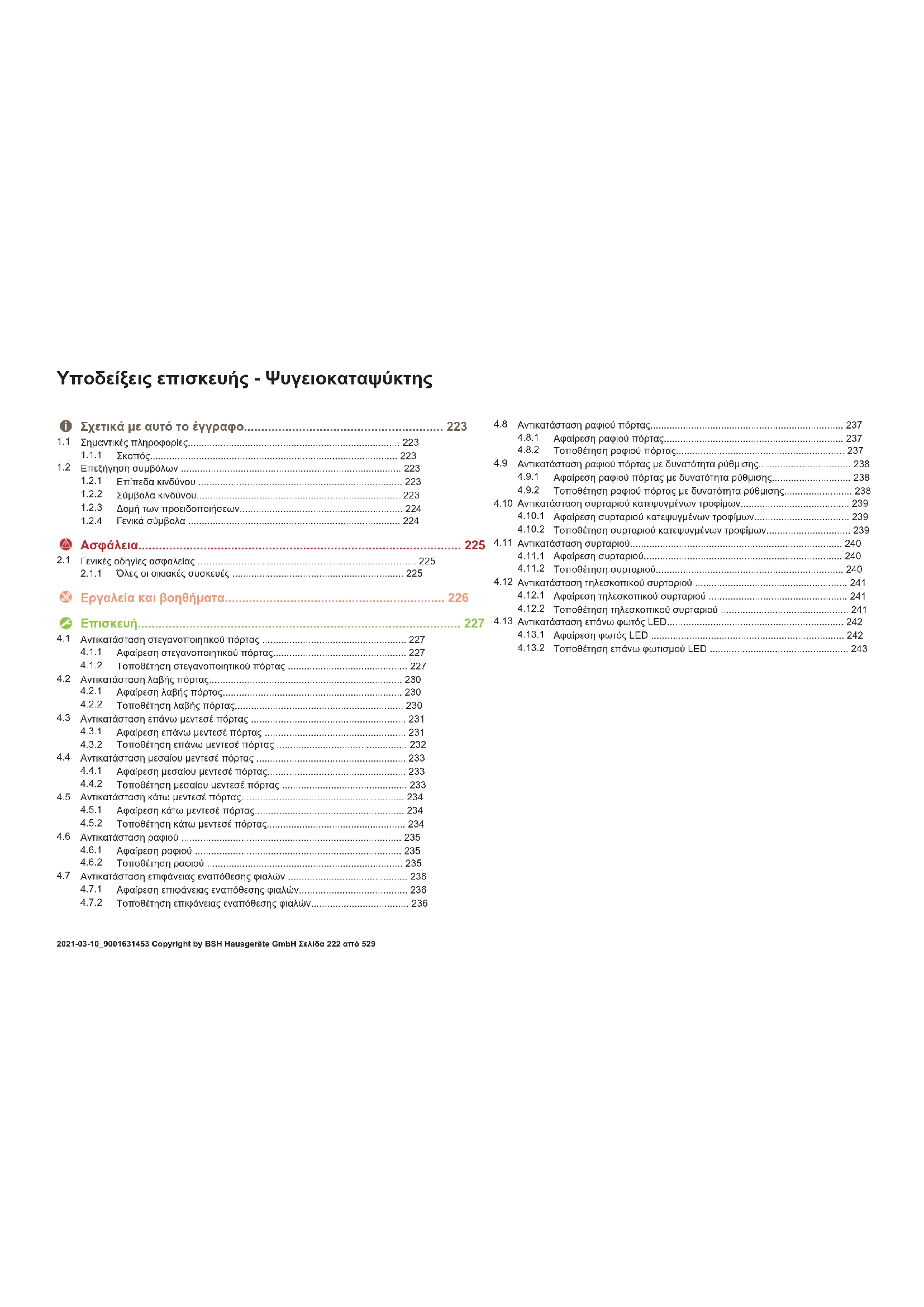 Τοποθέτηση επάνω φωτισμού LED ...................................................243 Yποδείξεις επισκευής-Ψυγειοκαταψύκτης 2021-03-10_9001631453 Copyright by BSH Hausgeräte GmbH Σελίδα222από529Σχετικά με αυτό το έγγραφο