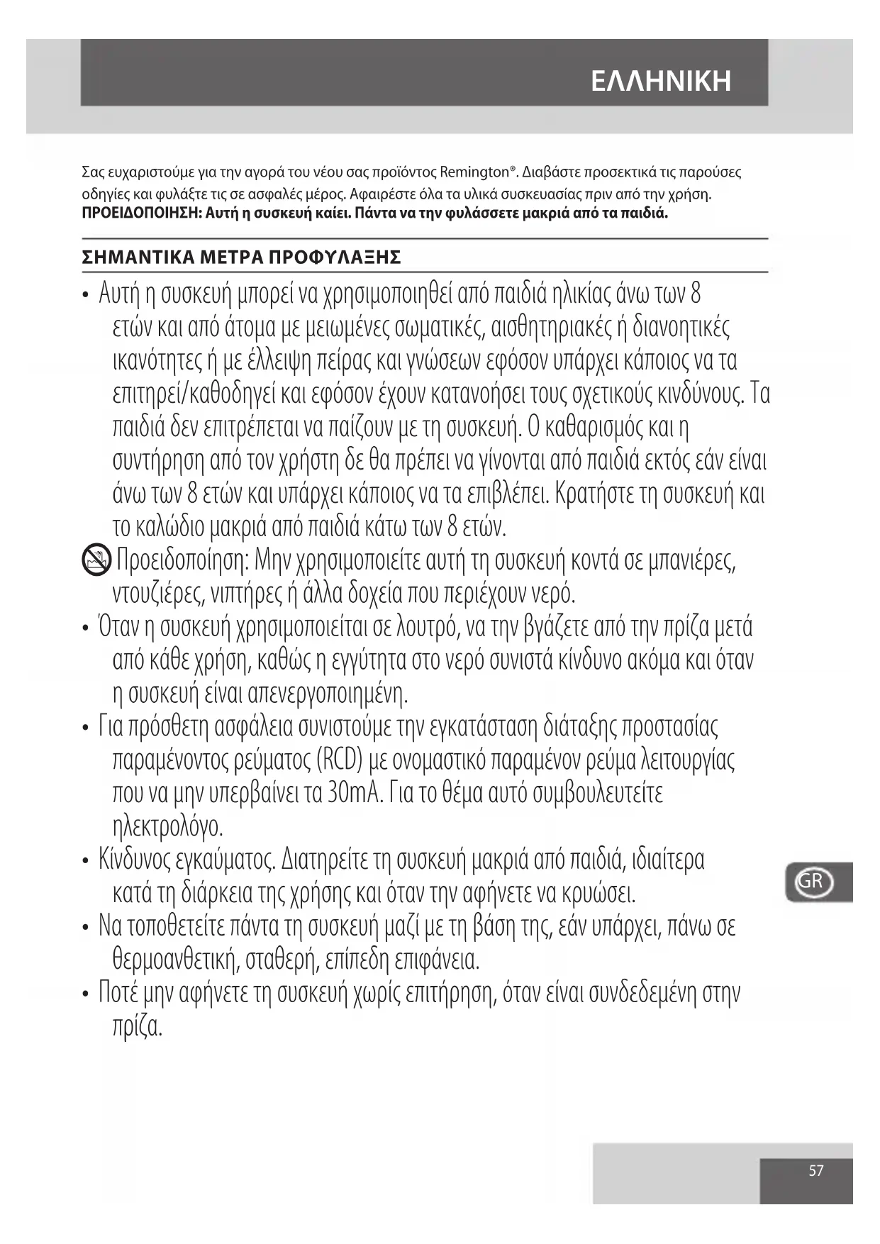 Av to kaλωδιο τροφοδοσίας αυτής της μουδας φθαρεί, διακόψτε αμέως τη χρήσι και επιοτρέψτε τη συοκεύνη στο πλησιεστερο εξουσιοδοτημένο Service Remington.