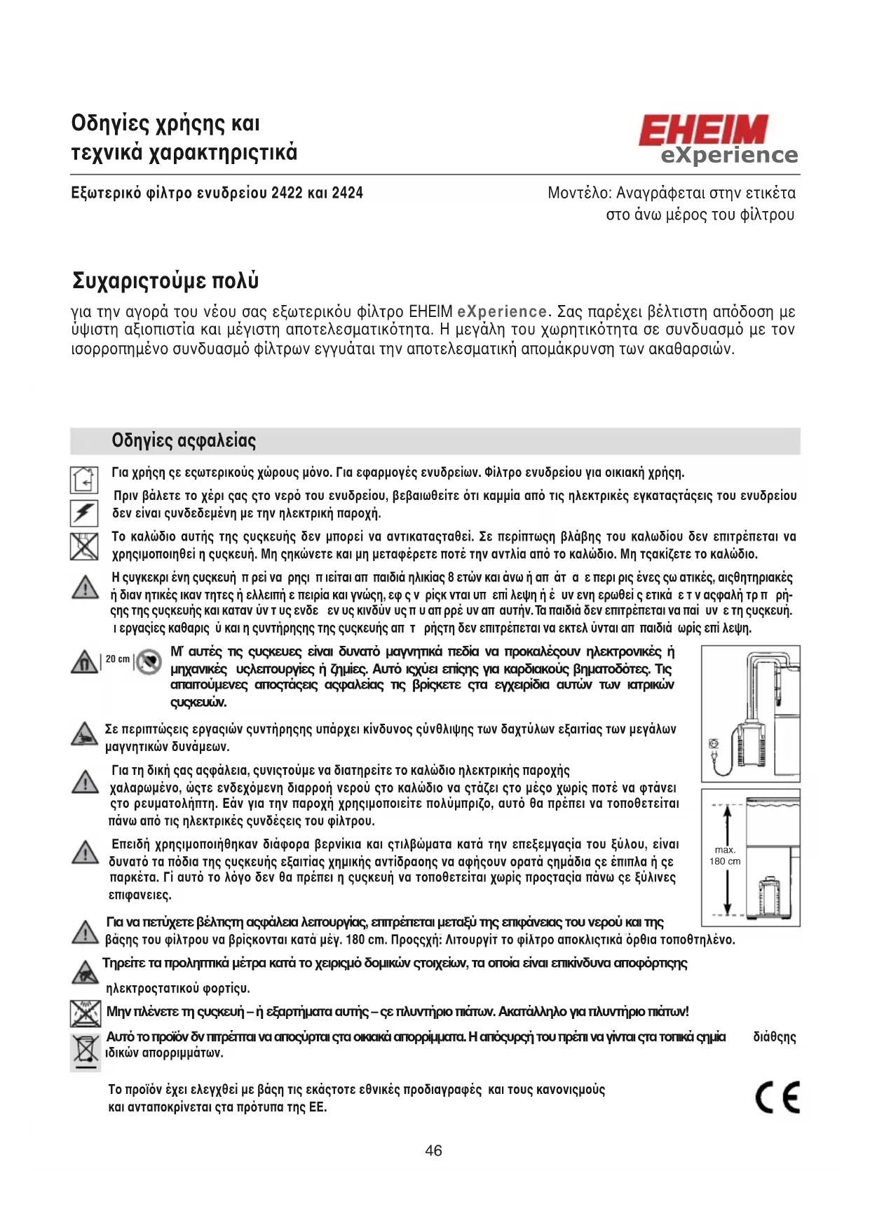 Κατεβάστε τις οδηγίες για το Φίλτρο νερού σε μορφή PDF δωρεάν! Βρείτε το εγχειρίδιό σας eXperience 250 - EHEIM και πάρτε ξανά την ηλεκτρονική σας συσκευή στα χέρια σας. Σε αυτή τη σελίδα δημοσιεύονται όλα τα έγγραφα που απαιτούνται για τη χρήση της συσκευής σας. eXperience 250 της μάρκας EHEIM.