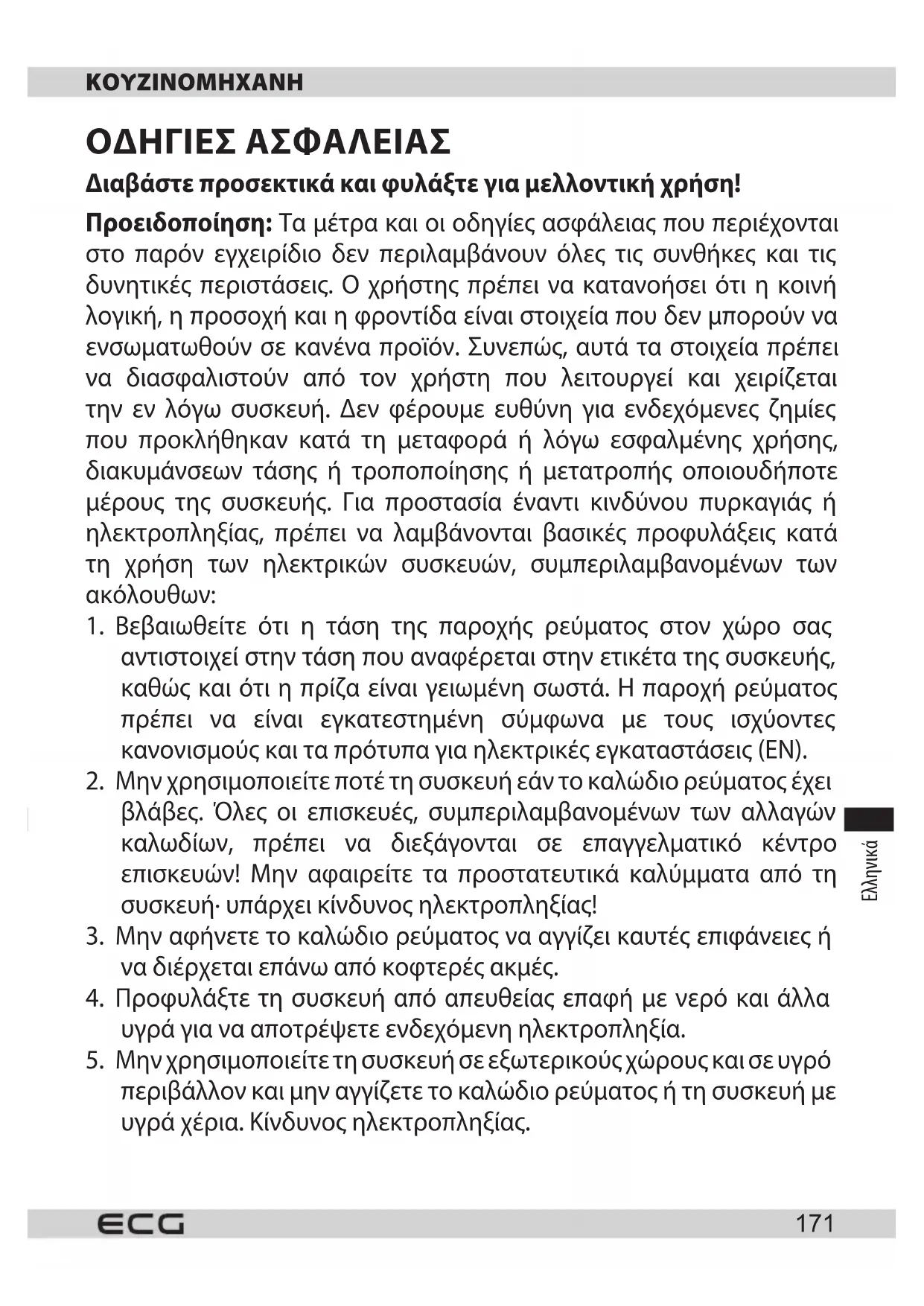 Αυτό το προϊόν συμμορφώνεται με τις απαιτήσεις της οδηγίας της ΕΕ σχετικά με την ηλεκτρομαγνητική συμβατότητα και την ηλεκτρική ασφάλεια, καθώς και με το ζήτημα της χρήσης βαρέων μετάλλων σε ηλεκτρικό και ηλεκτρονικό εξοπλισμό. Επιπλέον, καλύπτει τις σχετικές απαιτήσεις για την ενέργεια και την απευθείας επαφή με τρόφιμα. Το εγχειρίδιο χειρισμού είναι διαθέσιμο στη διεύθυνση www.ecg-electro.eu. Με την επιφύλαξη αλλαγών στο κείμενο και στις τεχνικές παραμέτρους. 08/05Українська мова Українська мова