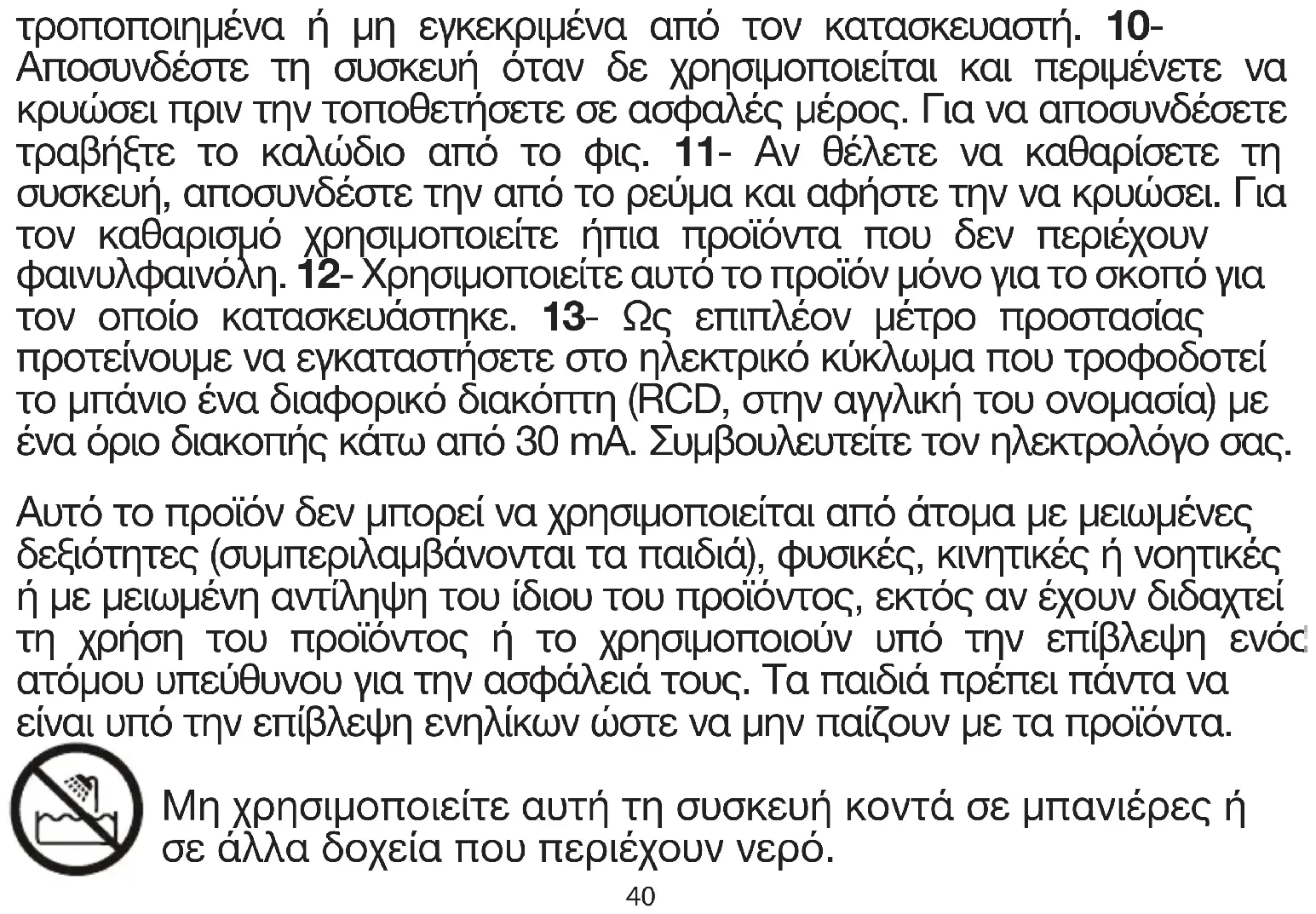 1- Μη χρησιμοποιείτε τη συσκευή με βρεγμένα χέρια, σε υγρούς χώρους ή
