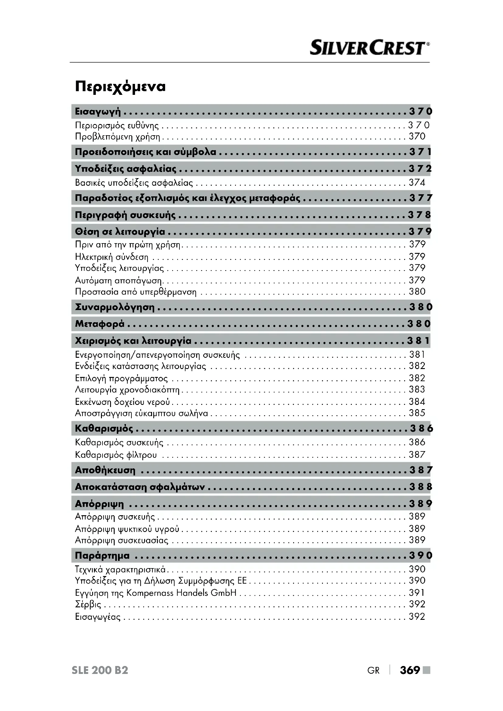 - 369 ■ SLE 200 B2 Περιεχόμενα Εισαγωγή p. 370