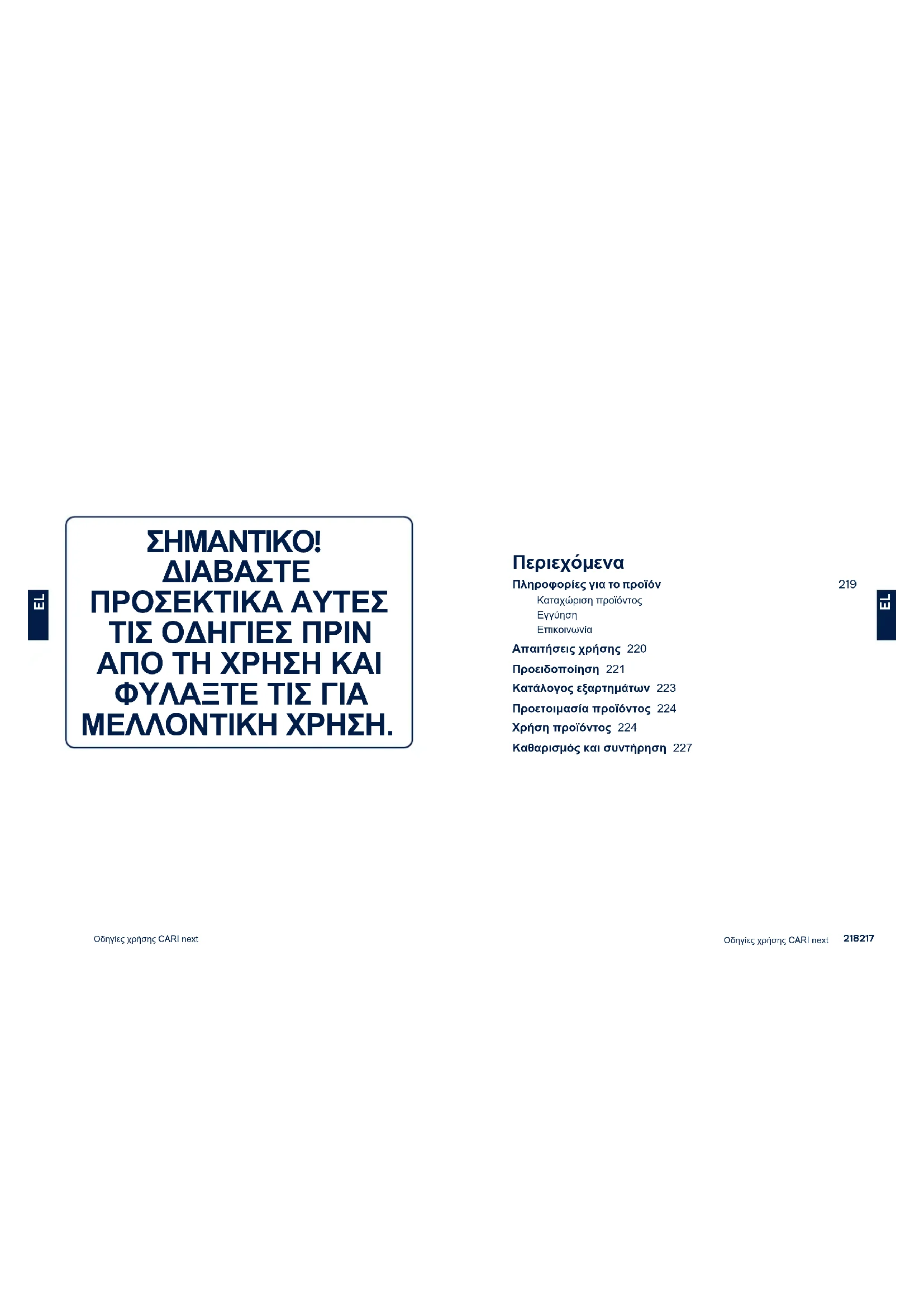 ΠΡΟΣΕΚΤΙΚΑ ΑΥΤΕΣ ΤΙΣ ΟΔΗΓΙΕΣ ΠΡΙΝ ΑΠΟ ΤΗ ΧΡΗΣΗ ΚΑΙ ΦΥΛΑΞΤΕ ΤΙΣ ΓΙΑ ΜΕΛΛΟΝΤΙΚΗ ΧΡΗΣΗ.220219 Οδηγίες χρήσης CARI nextΟδηγίες χρήσης CARI next
