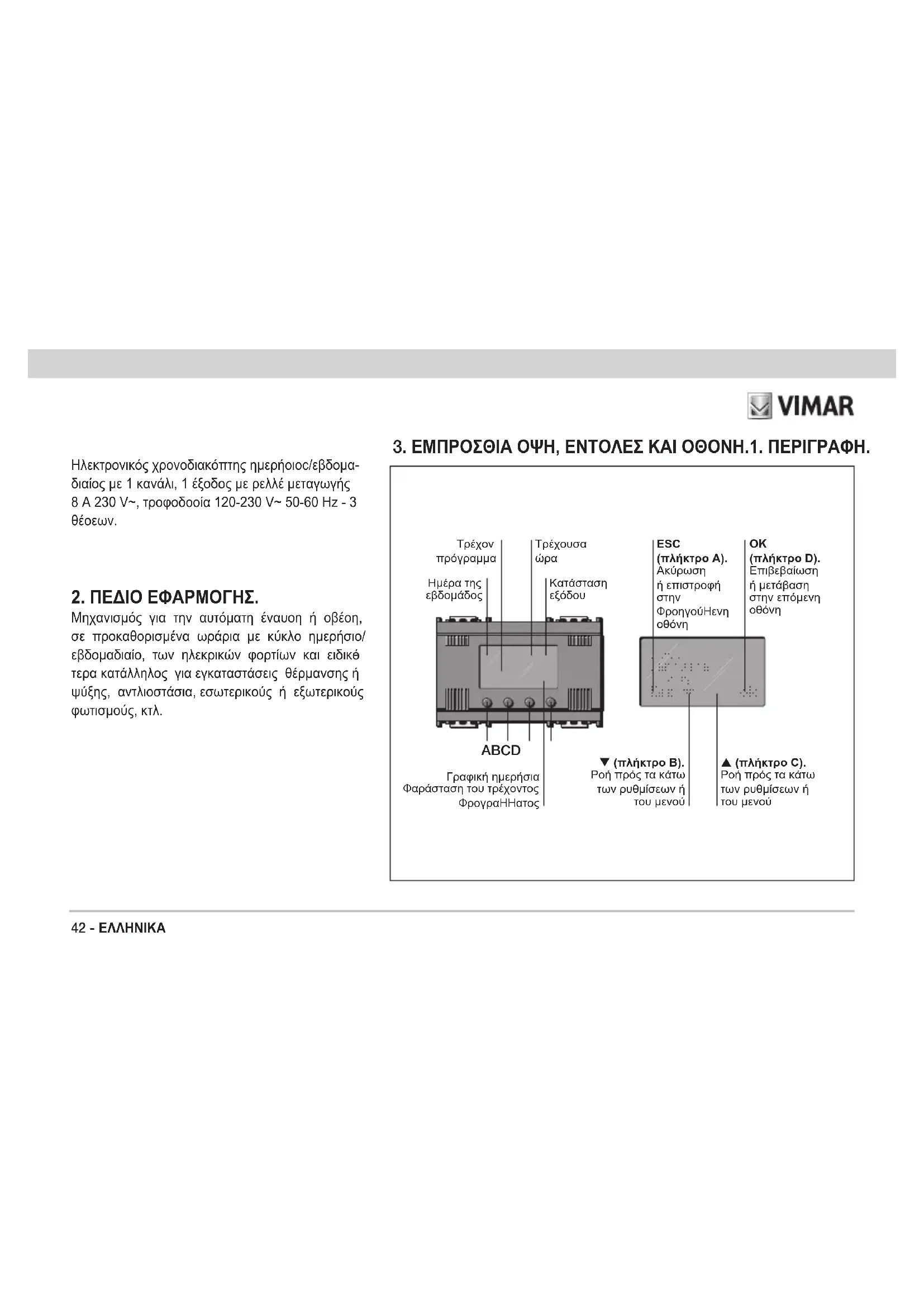 Ηλεκτρονικός χρονοδιακόπτης ημερήοιoc/εβδoμα- διαίος με 1 κανάλι, 1 έξοδος με ρελλέ μεταγωγής 8 A 230 V~, τροφοδοοία 120-230 V~ 50-60 Hz - 3