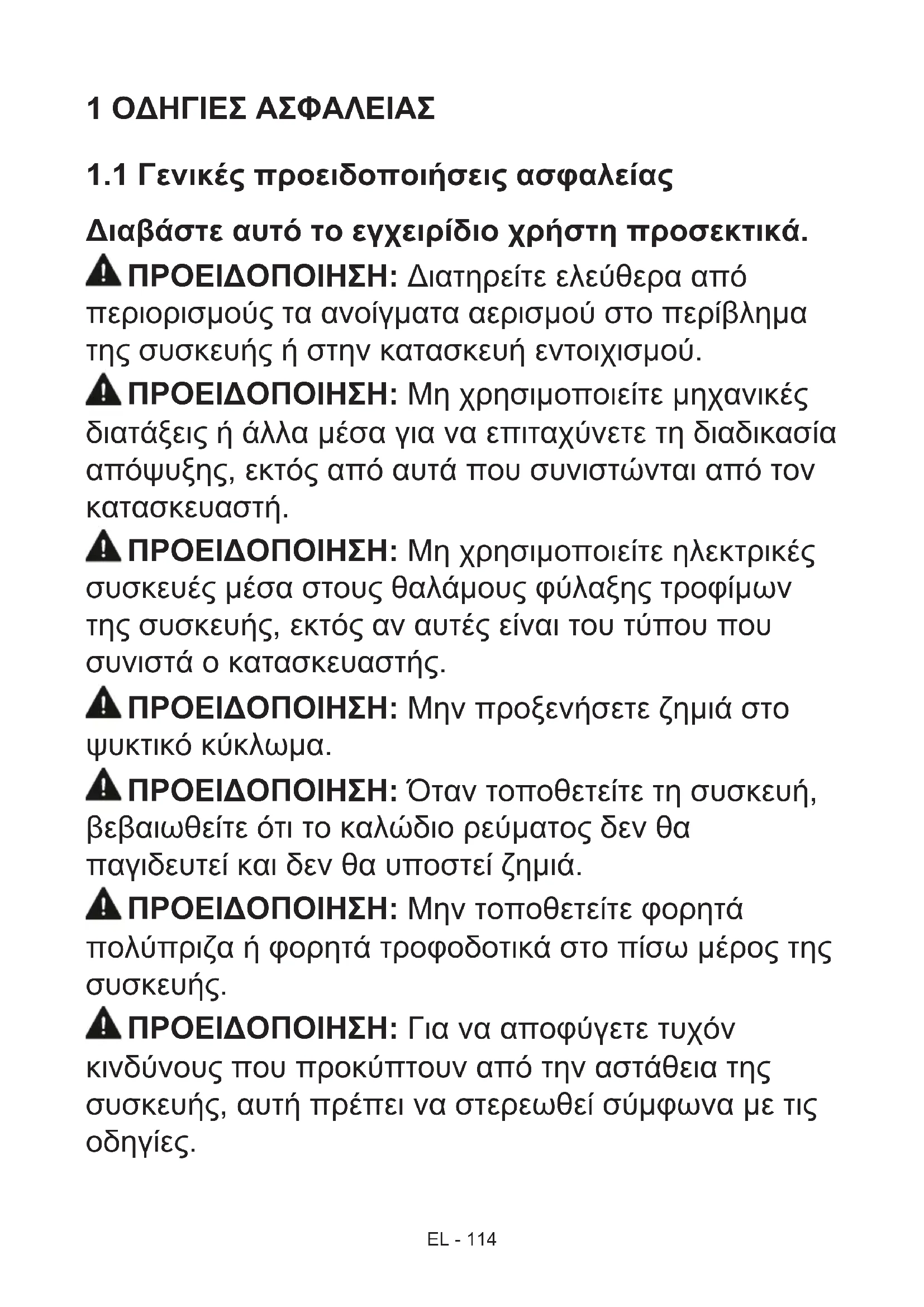 1.1 Γενικές προειδοποιήσεις ασφαλείας