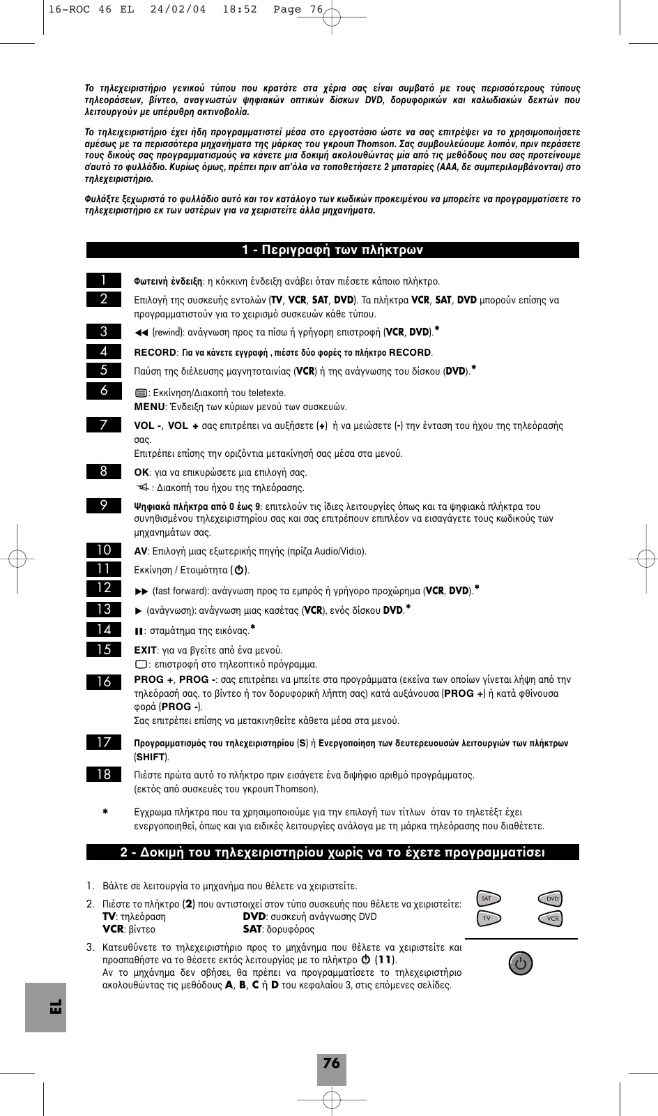 Retrouvez gratuitement la notice de l'appareil ROC 46 THOMSON au format PDF.